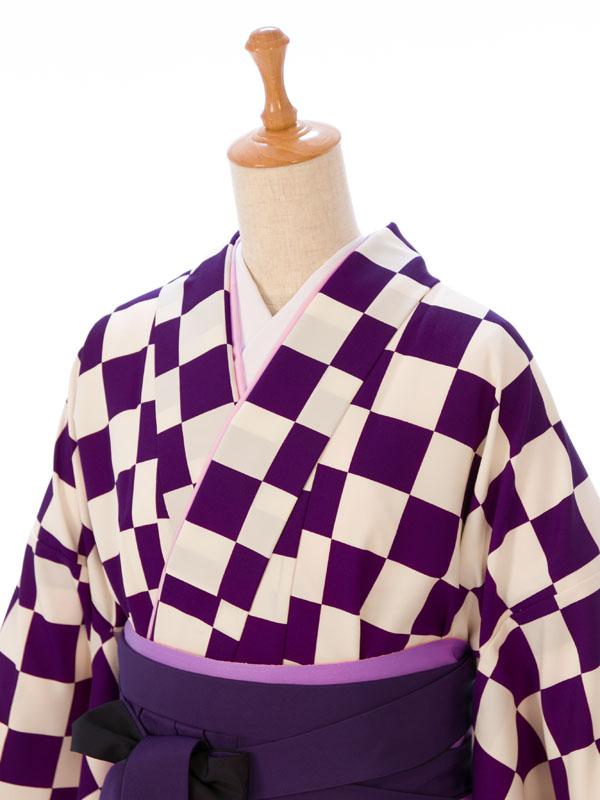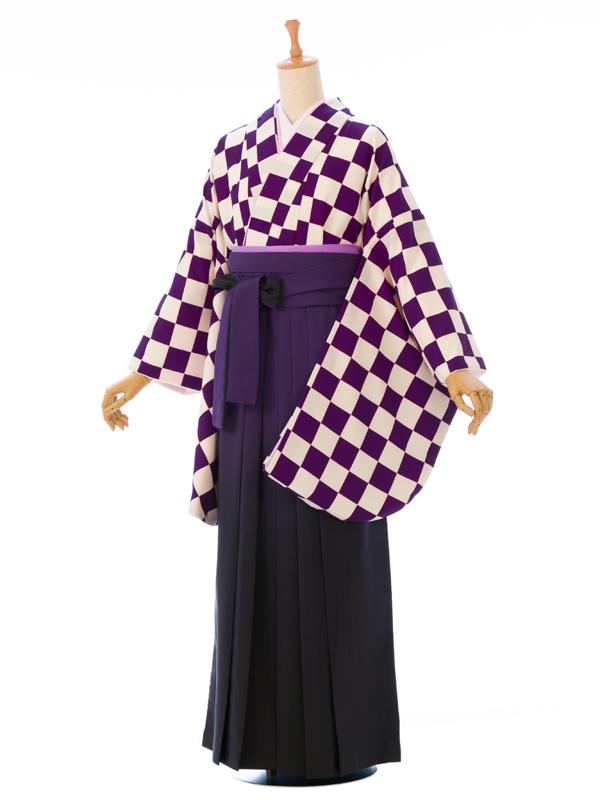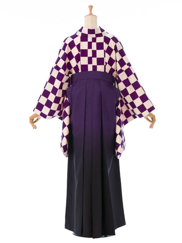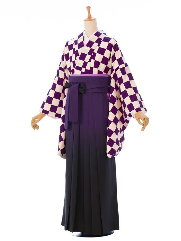 ■着物::白×紫 市松■袴:紫ぼかし袴 2.5