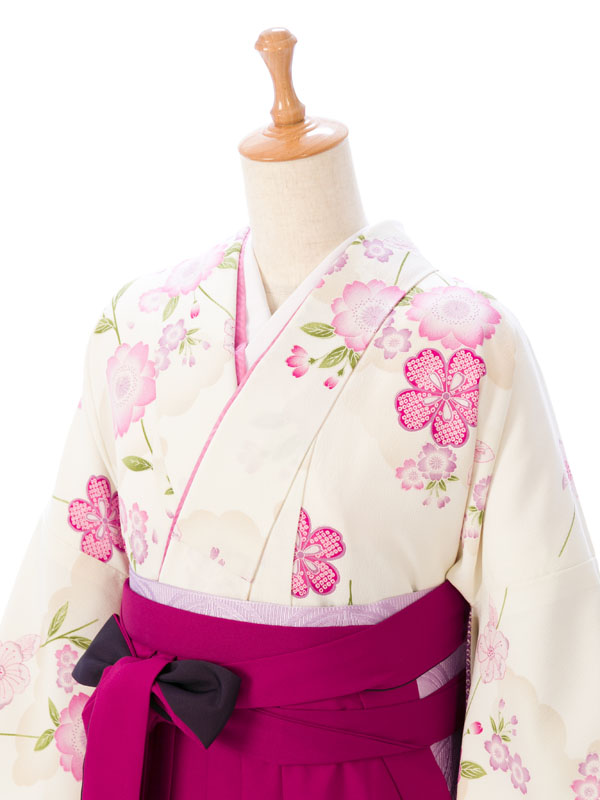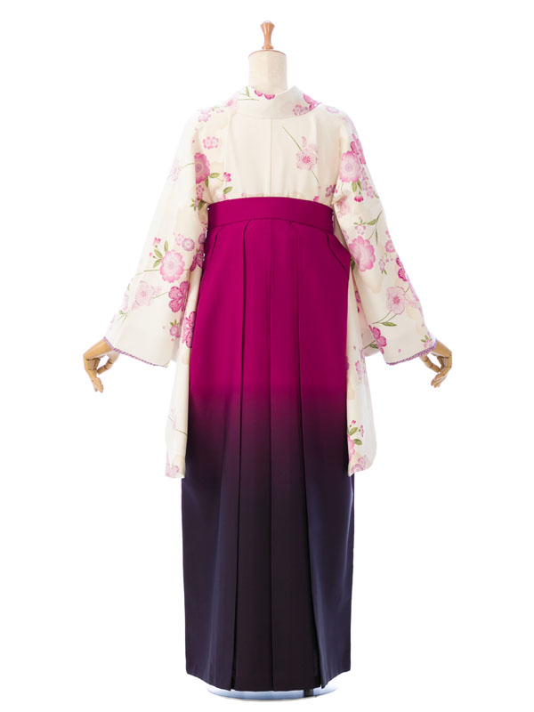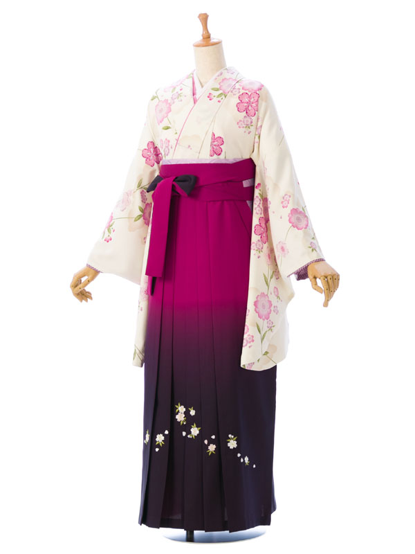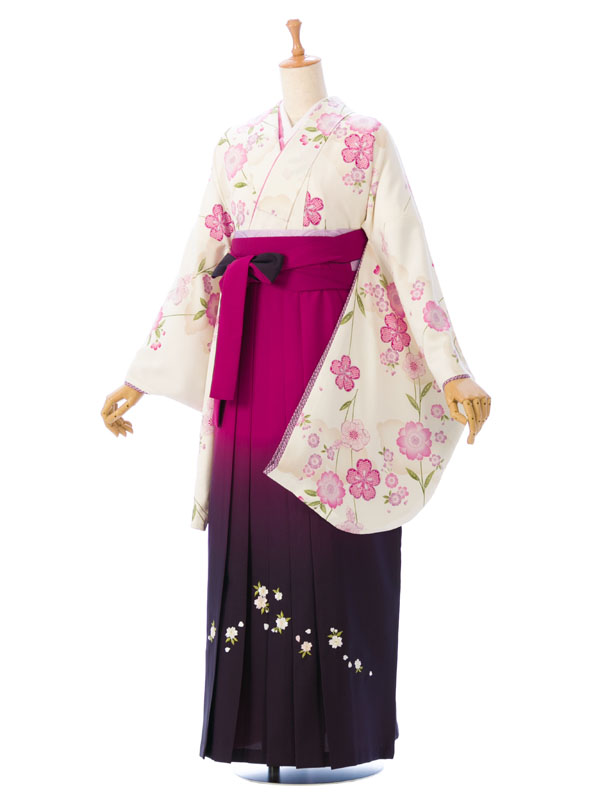 ■着物:クリーム地 枝垂れ桜■袴:赤紫地 紫ぼかし 桜刺繍 2.6