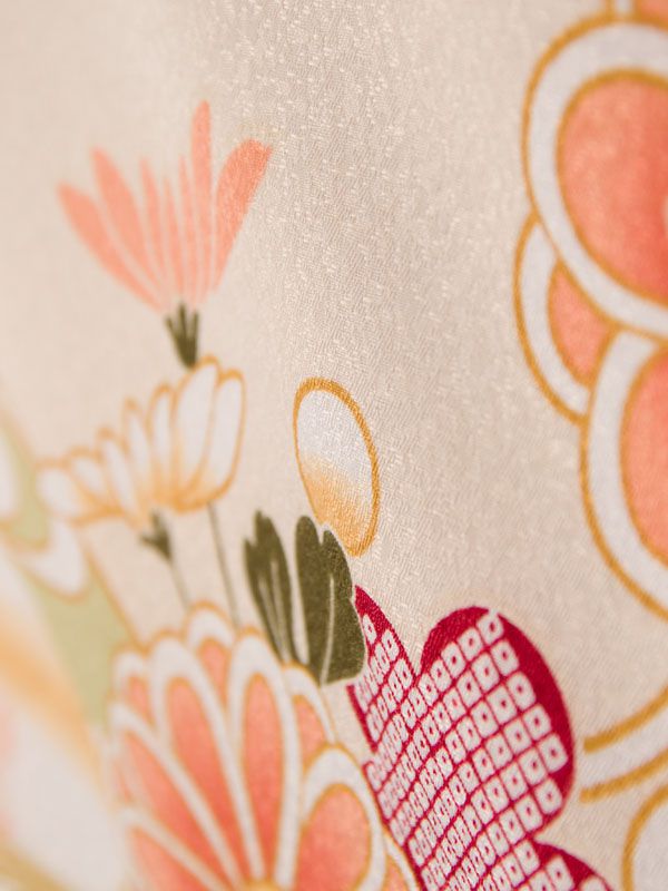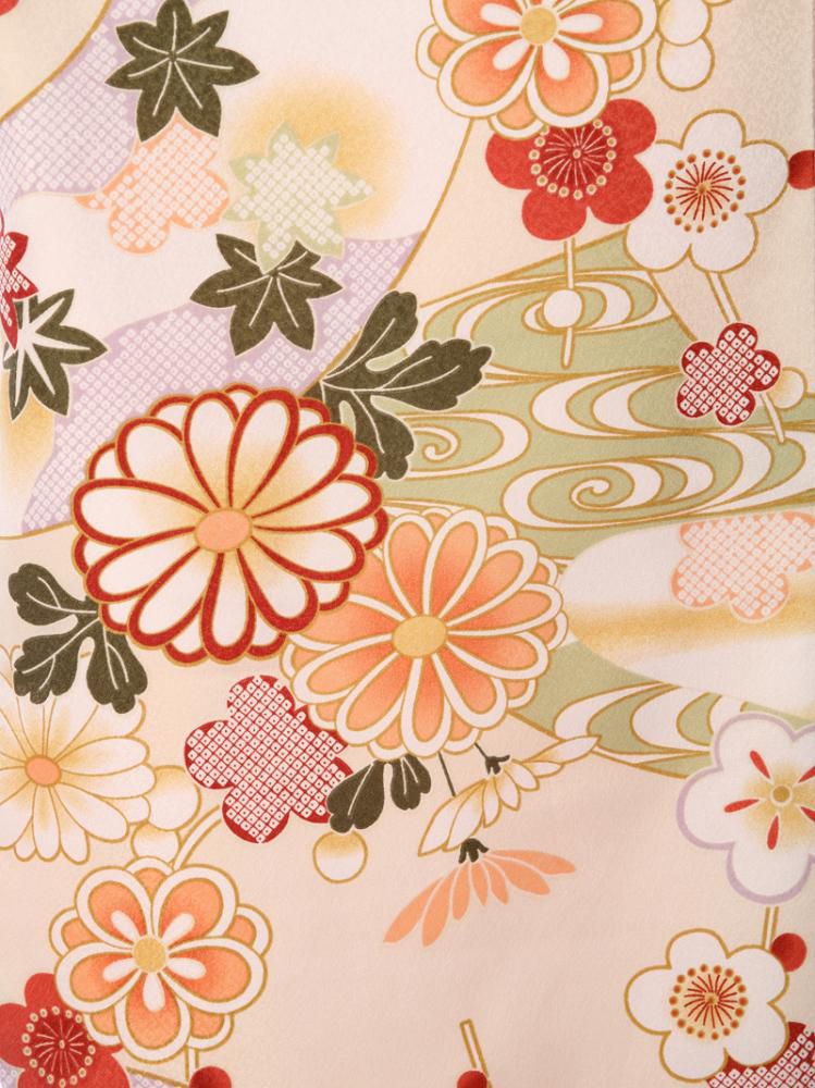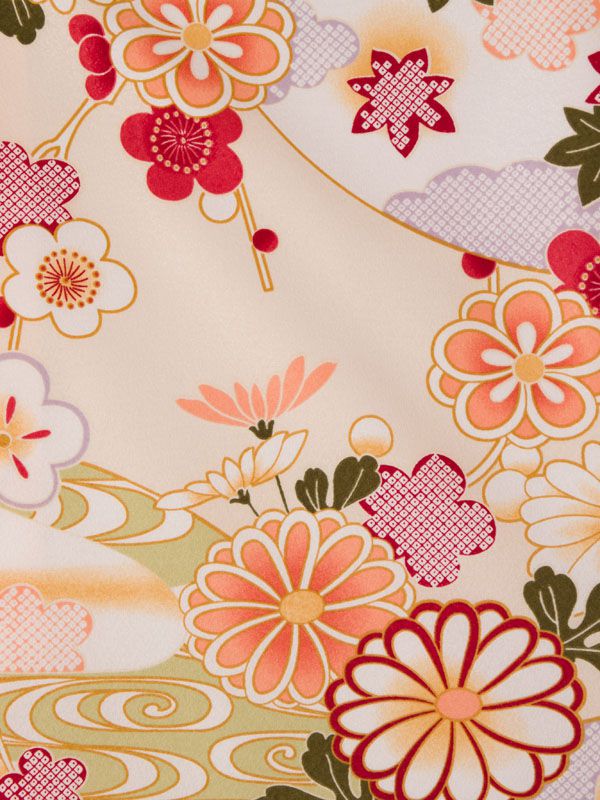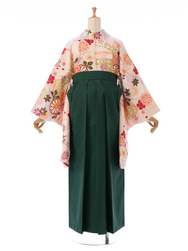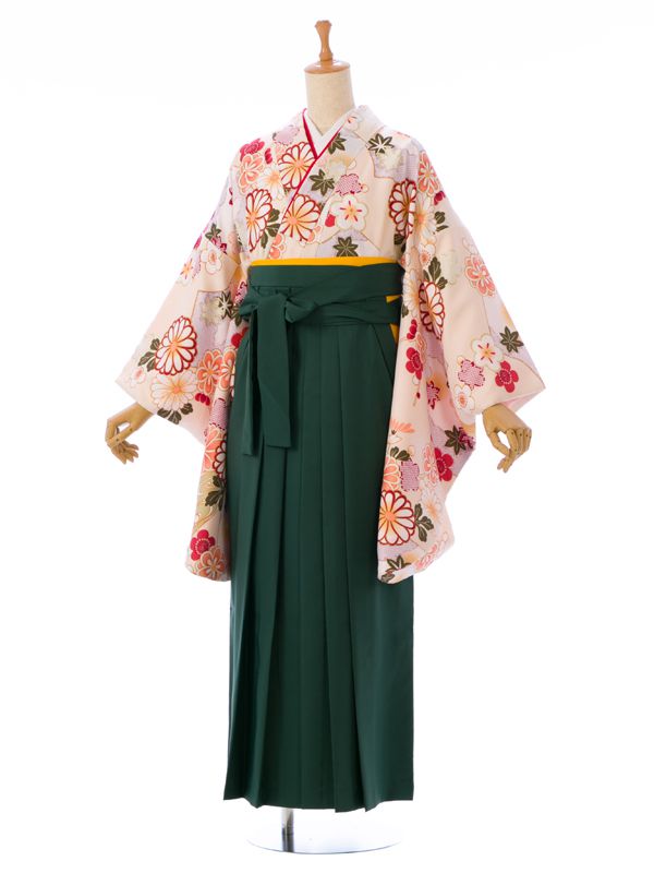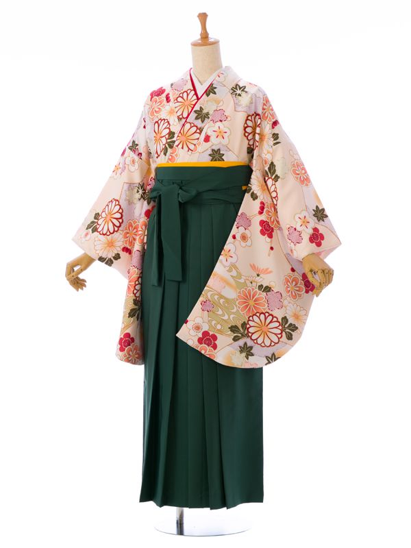 ■着物:クリームベージュ 四季草花 古典柄■袴:グリーン袴 2.5