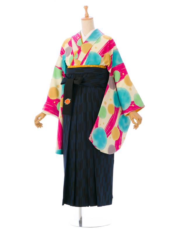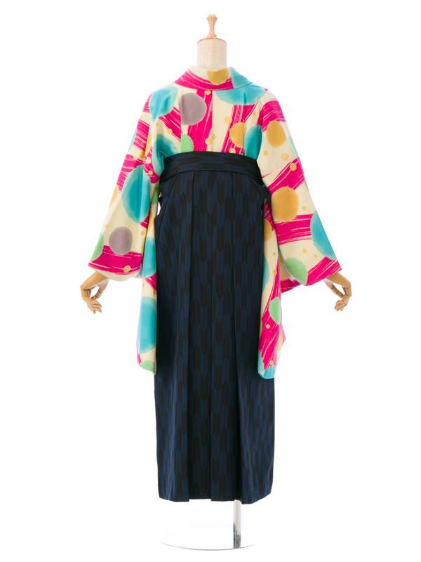 ■着物:earth music & ecology 水玉 クリーム/ピンク■袴:紺 矢絣に椿