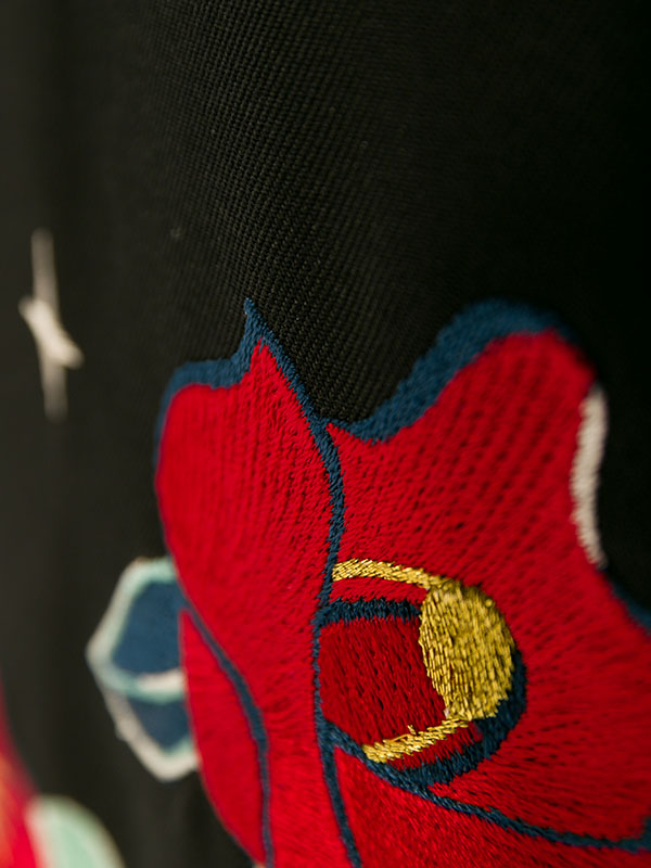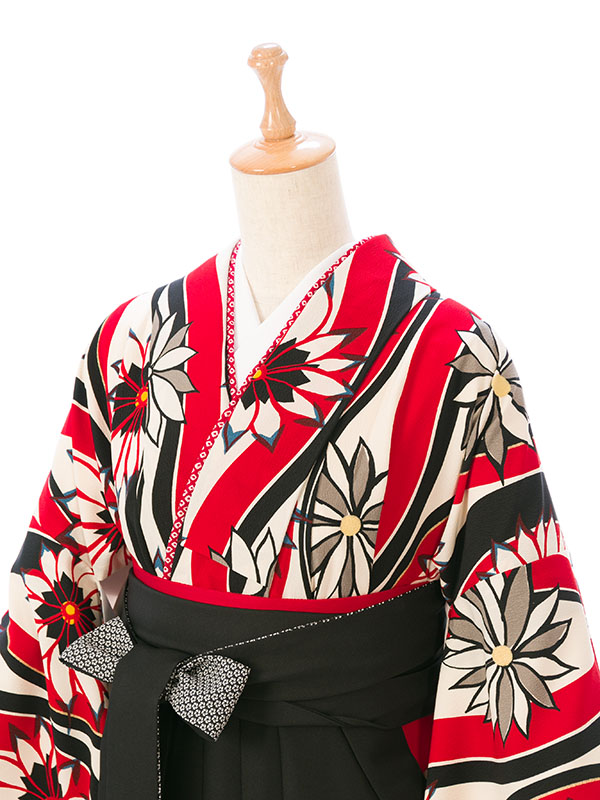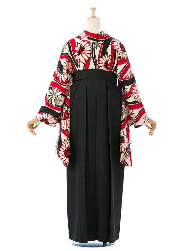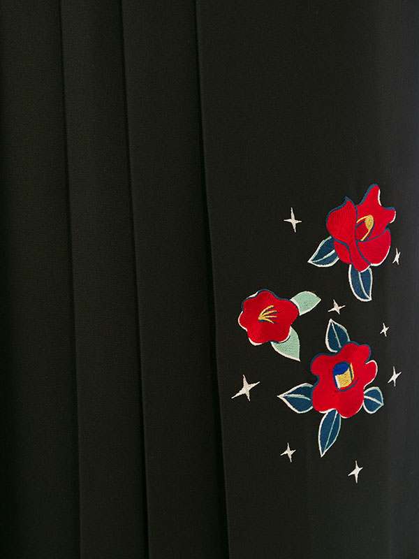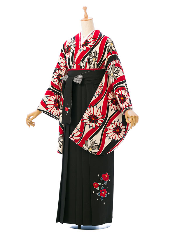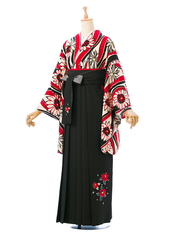 ■着物:九重 赤地 よろけ菊■袴:黒袴 椿刺繍 2.4