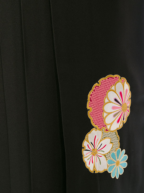 ■着物:ブルー 水玉地紋 ストライプ■袴: 黒袴 菊刺繍 紐市松 2.5