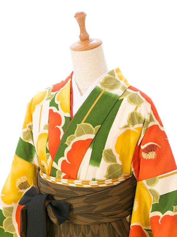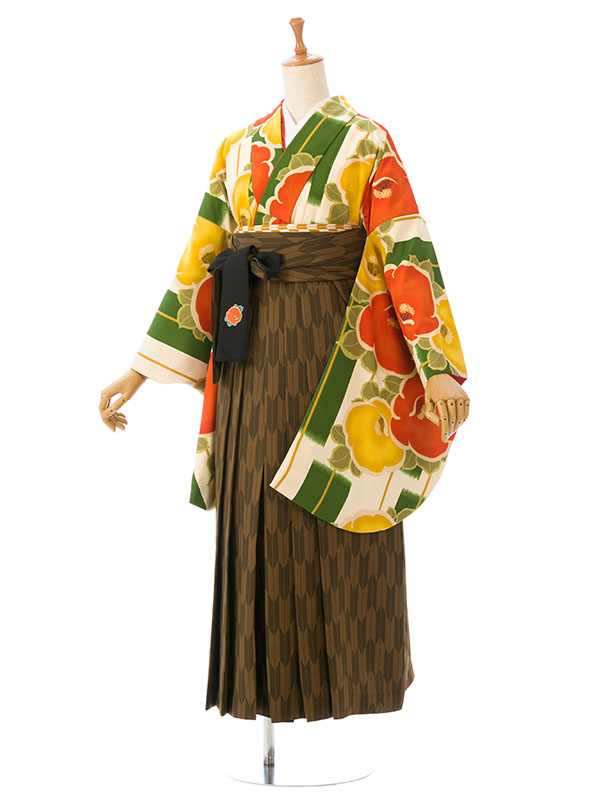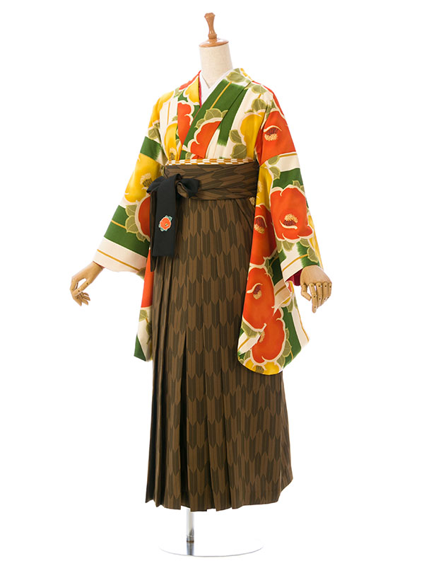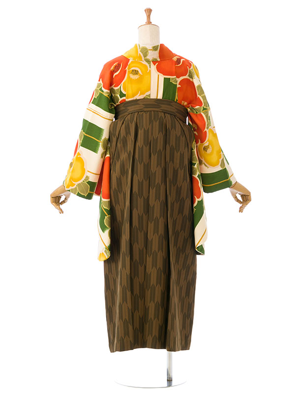 ■着物:earth music & ecology クリーム×グリーン 椿■袴:モスグリーン 矢絣 2.4