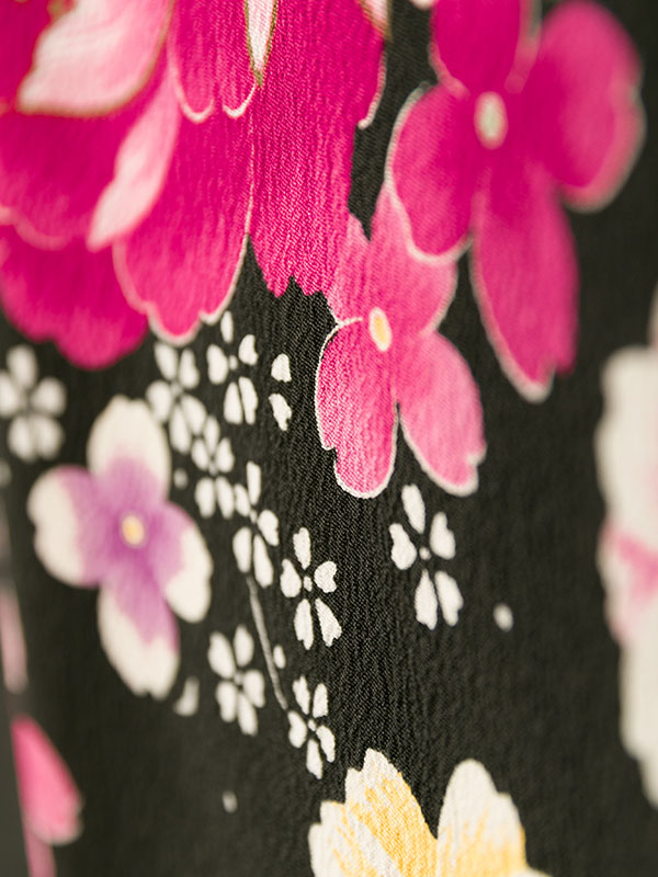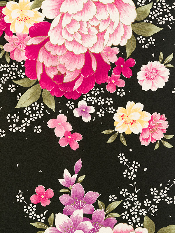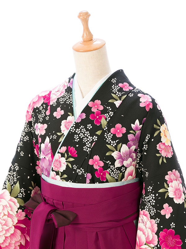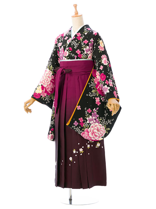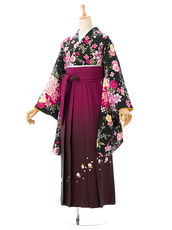 ■着物:黒地 牡丹 桔梗■袴:ワインぼかし袴 桜刺繍 2.4