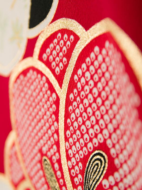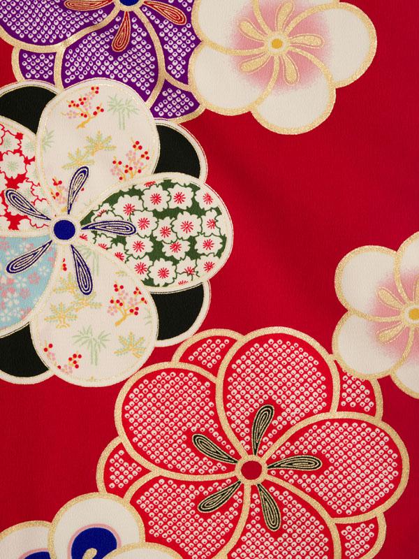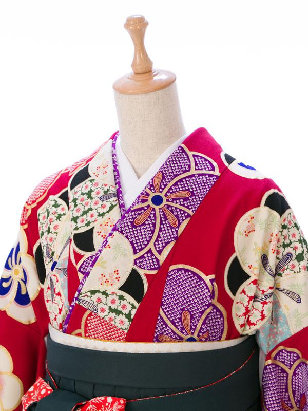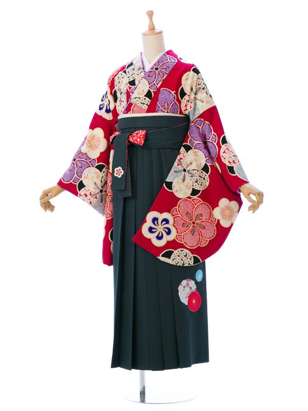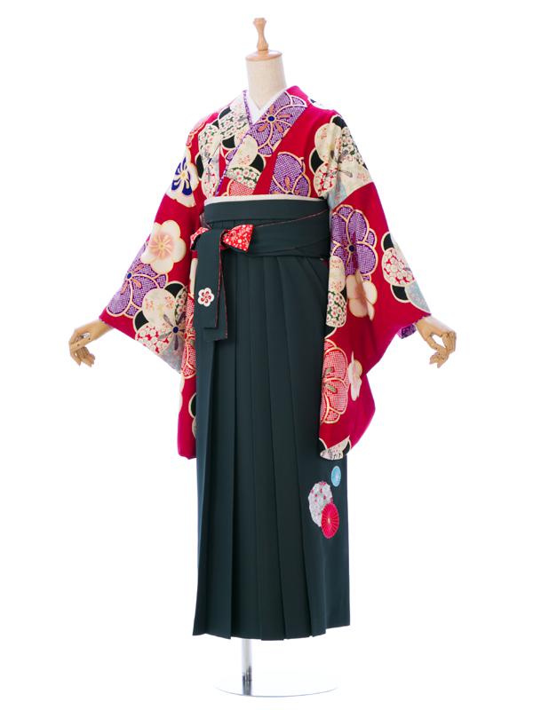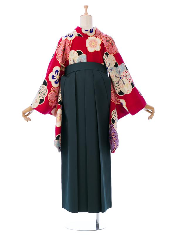■着物:赤 ねじり梅■袴:グリーン袴 菊に梅刺繍 2.5