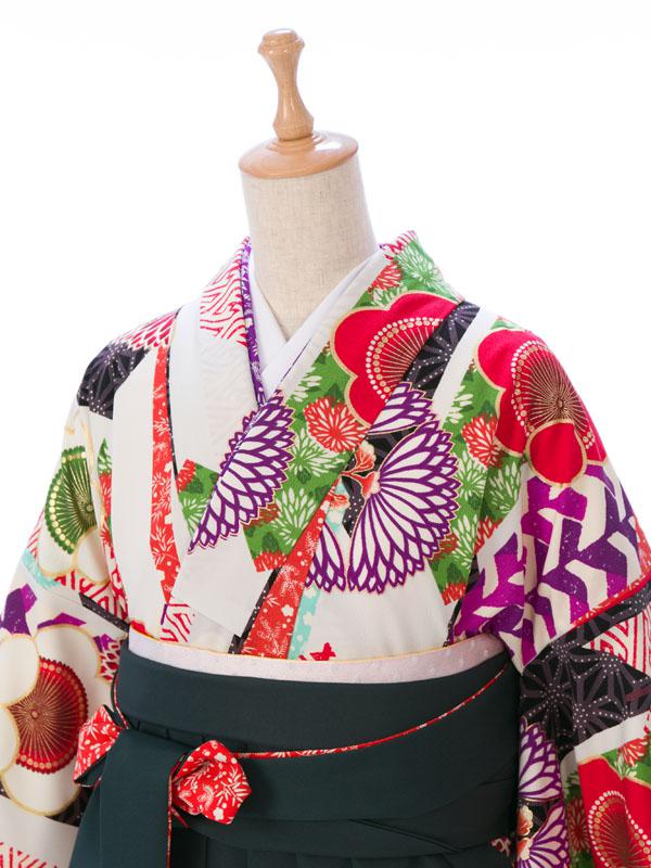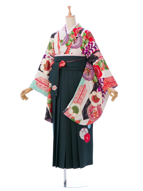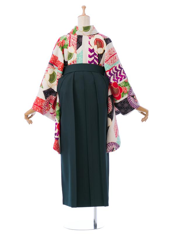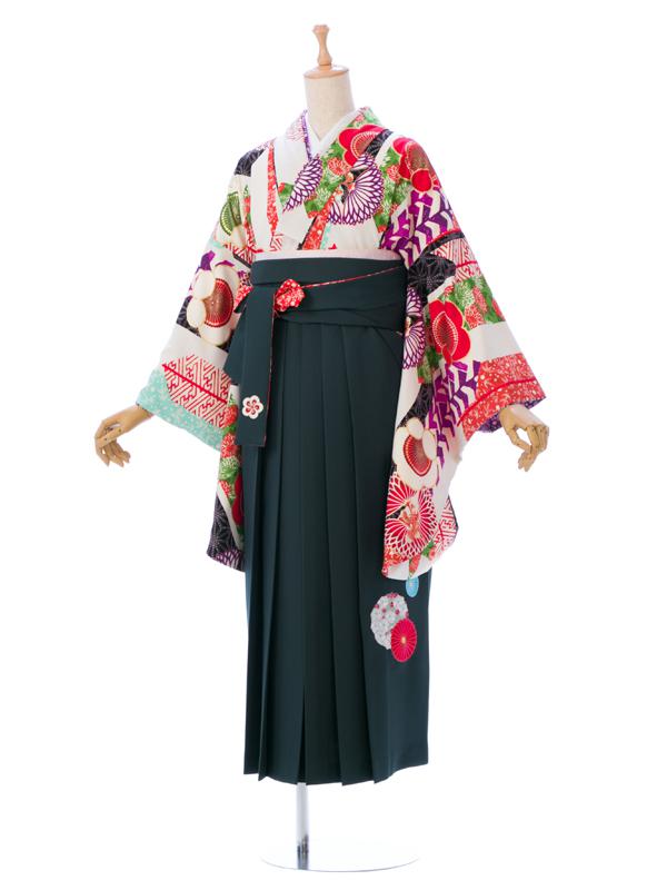 ■着物:白 矢羽根に梅■袴:グリーン袴 菊に梅 2.4