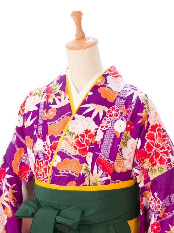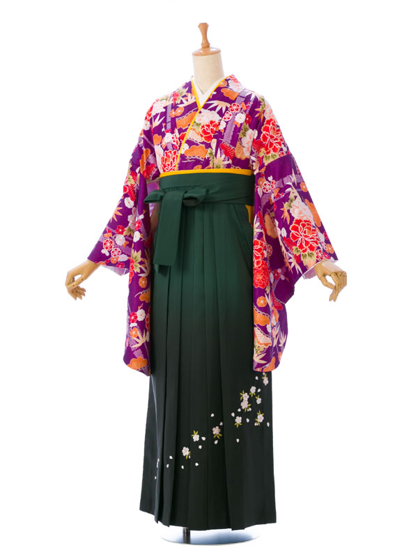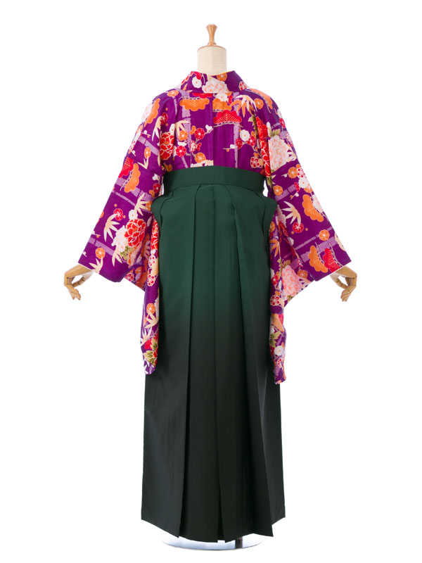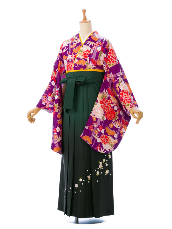 ■着物:紫地 松竹梅 古典柄■袴:グリーンぼかし袴 桜刺繍 2.3