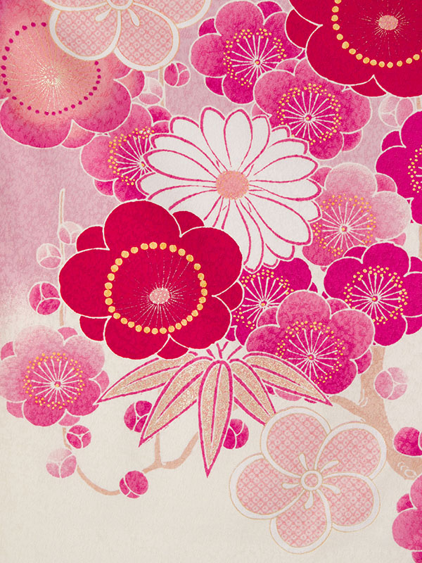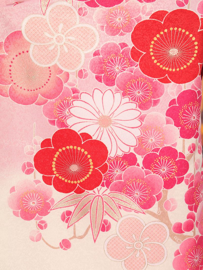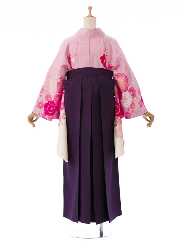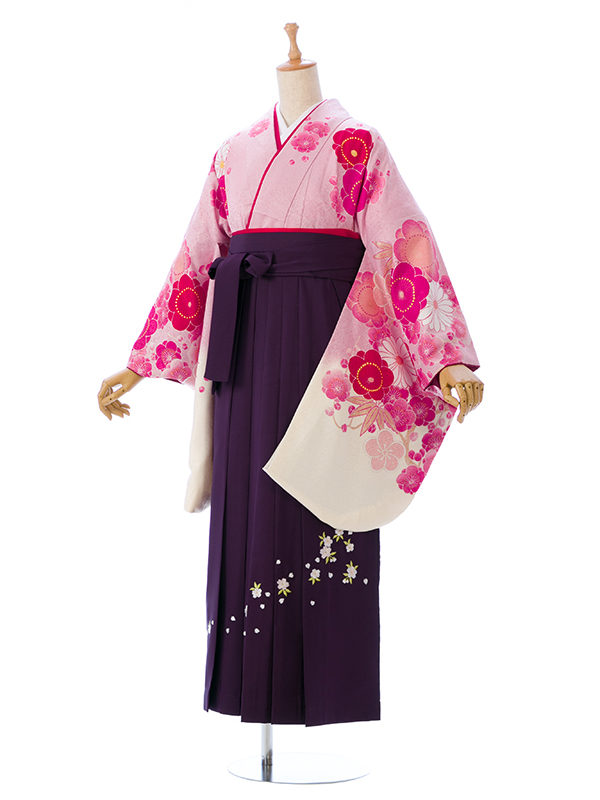 ■着物:ピンク地クリームぼかし 梅竹菊■袴:紫ぼかし袴 小桜刺繍 95cm