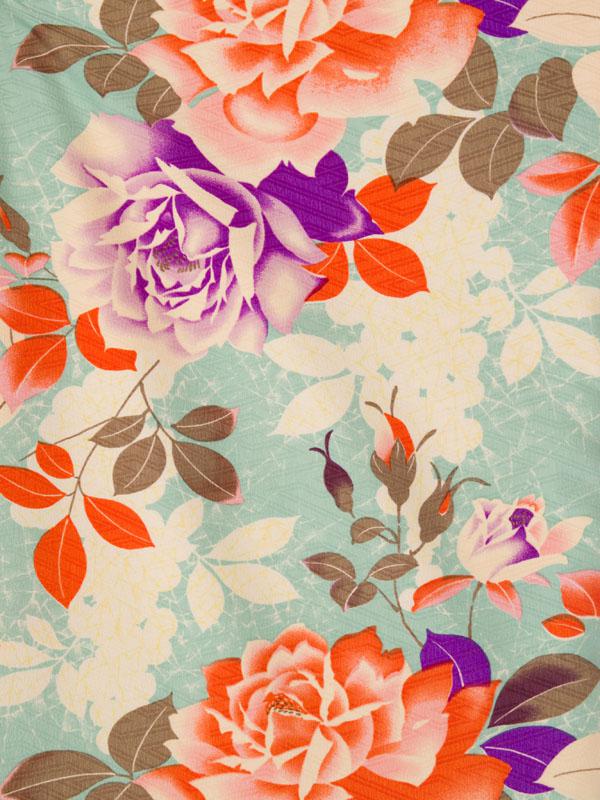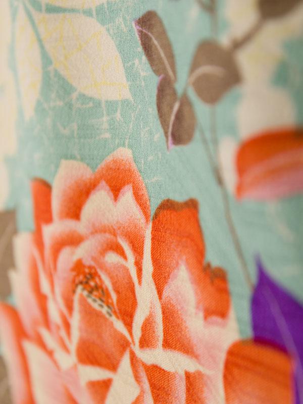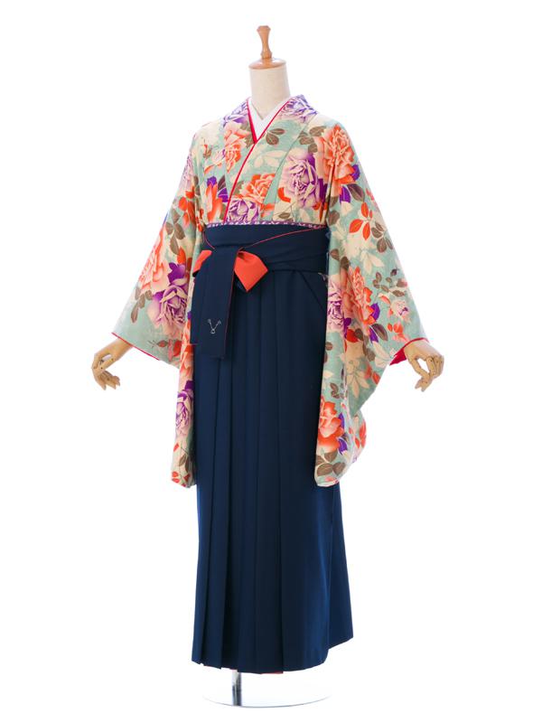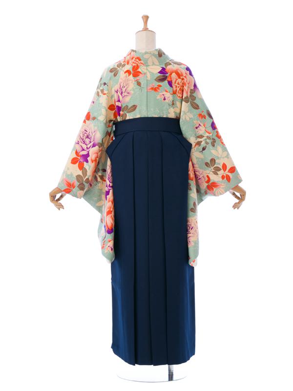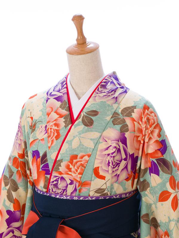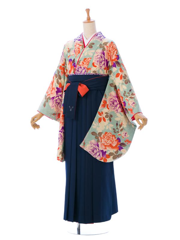 ■着物:ミント「ローズミニョンヌ」 ■袴:紺×オレンジ袴 バイカラー 2.5