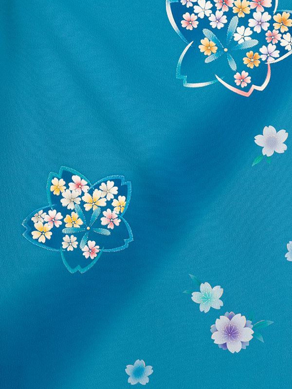 ■着物: ブルー地 桜づくし■袴: 紺袴 2.4