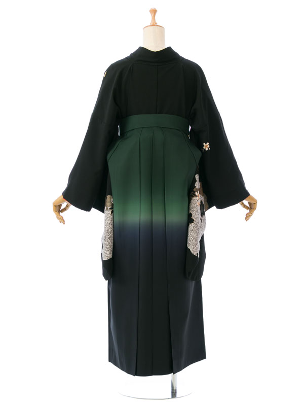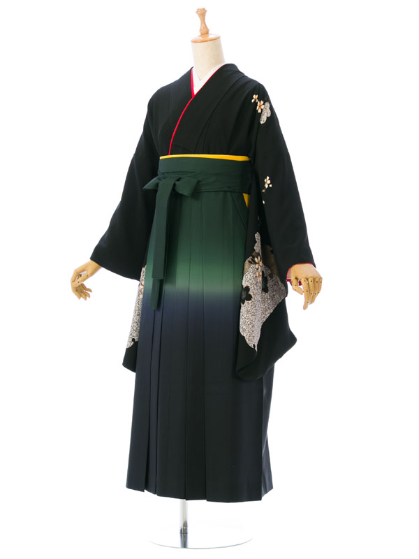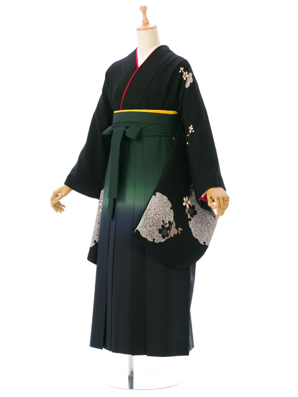 ■着物: 黒地 桜 鏡表■袴:グリーン黒ぼかし袴 2.4