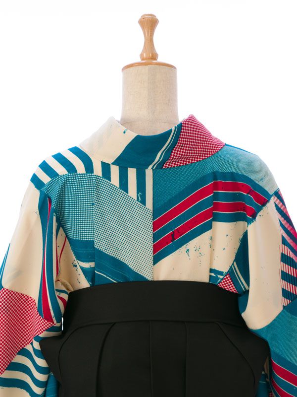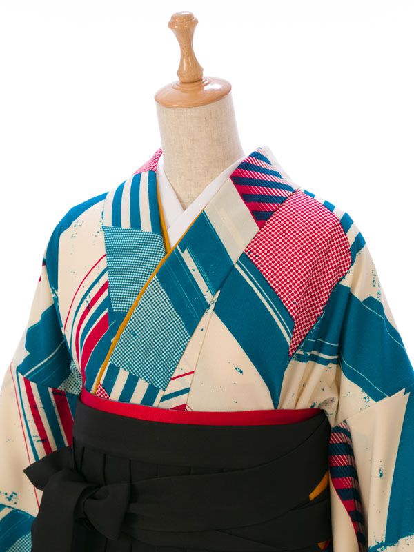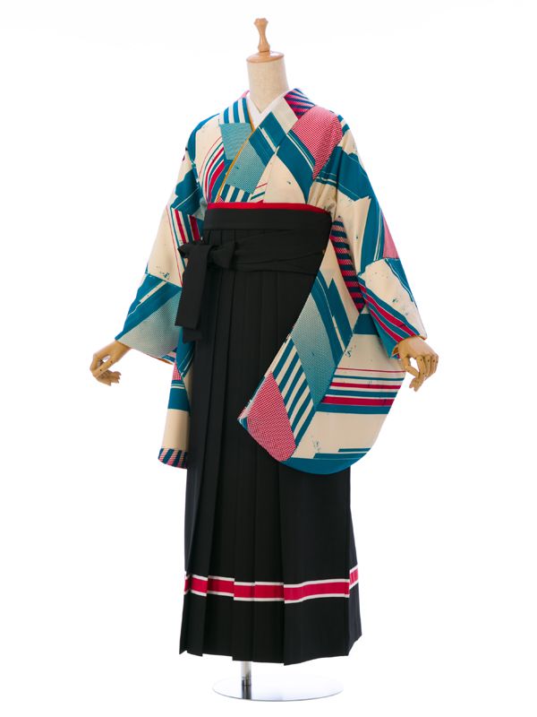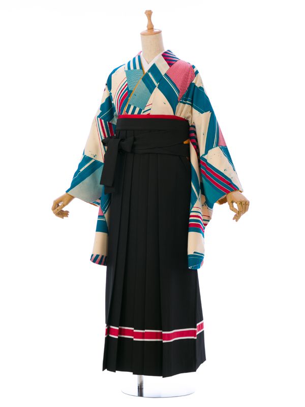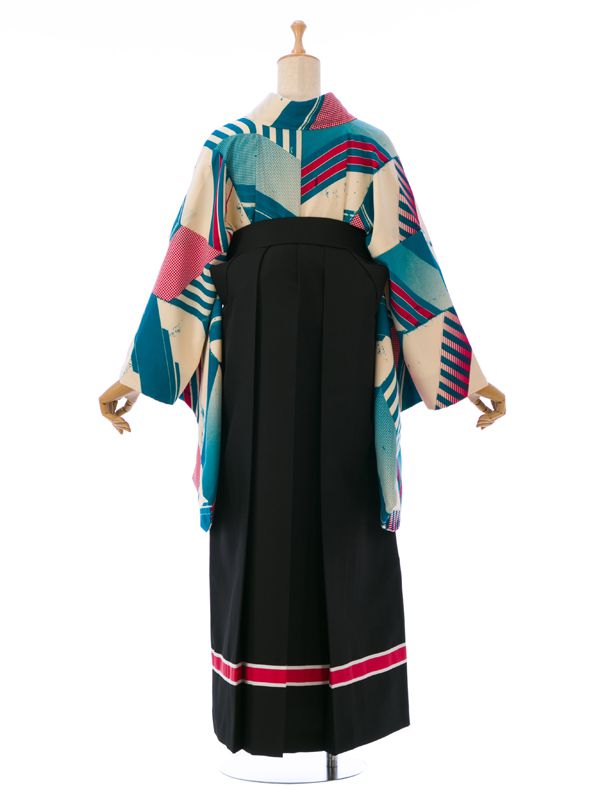 ■着物:クリーム ターコイズ矢羽根■袴:黒袴 赤ライン