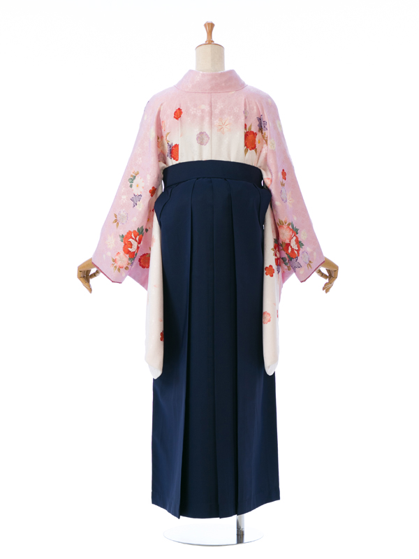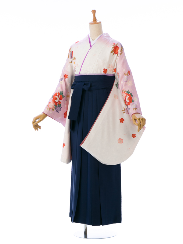 ■着物: 白地 ピンクぼかし 牡丹桜■袴: 紺袴 2.3