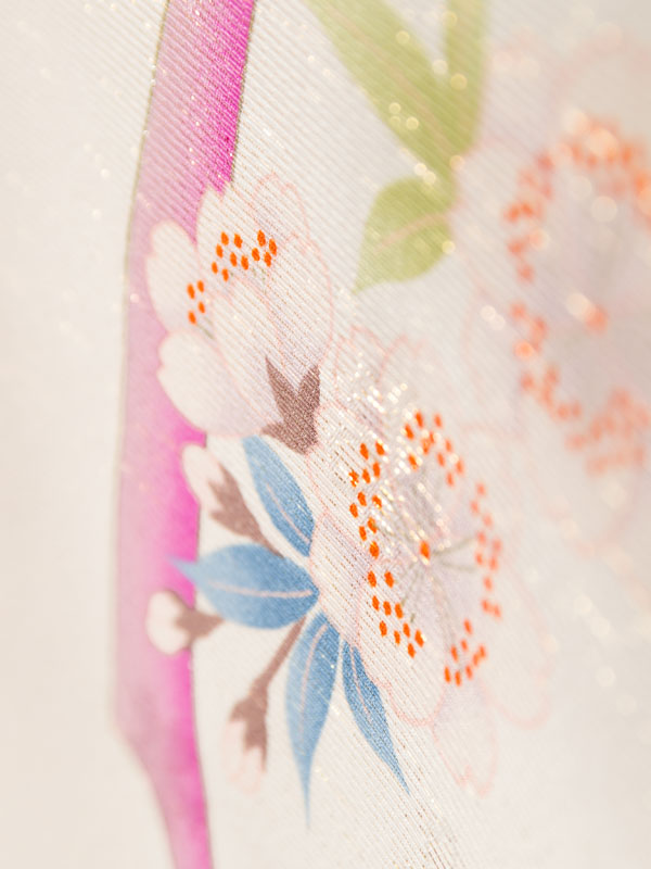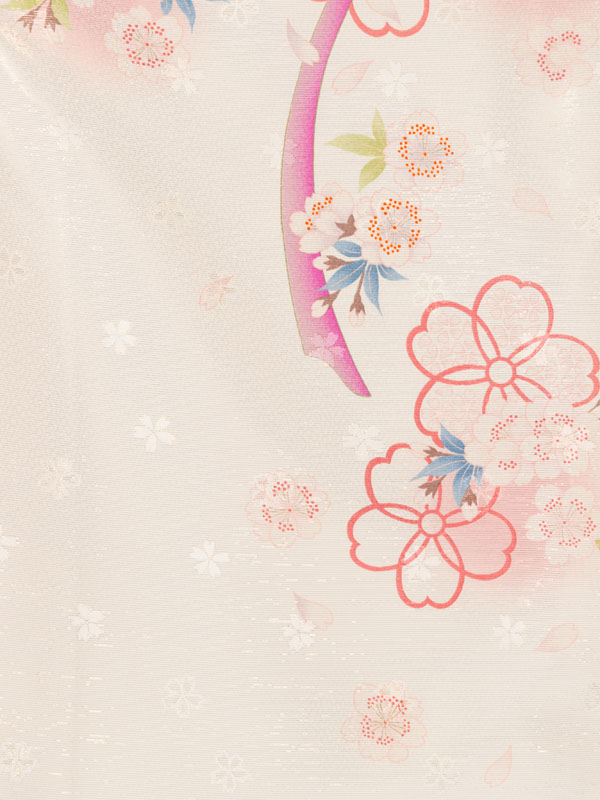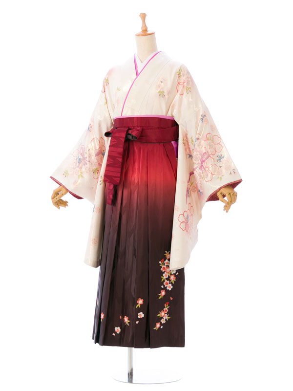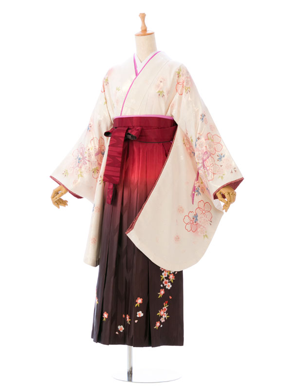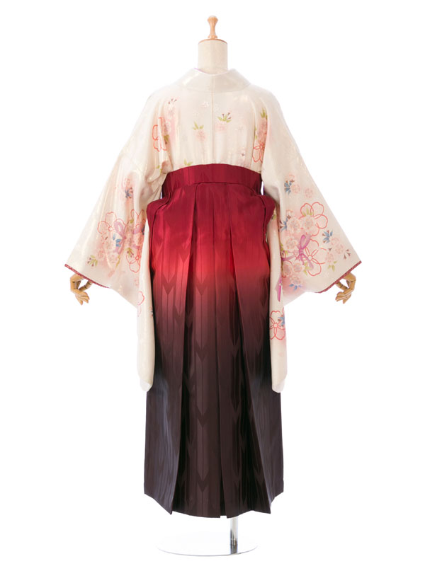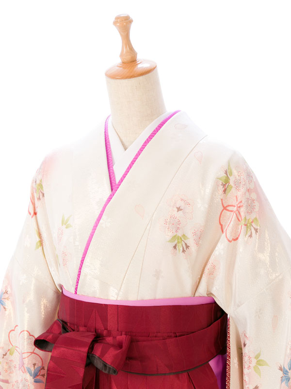 ■着物:クリームラメ織 リボンに桜■袴:茶色矢絣ぼかし袴 桜刺繍 2.4