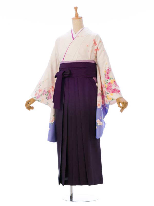 ■着物: 白地 蘭 小花■袴: 紫ぼかし袴