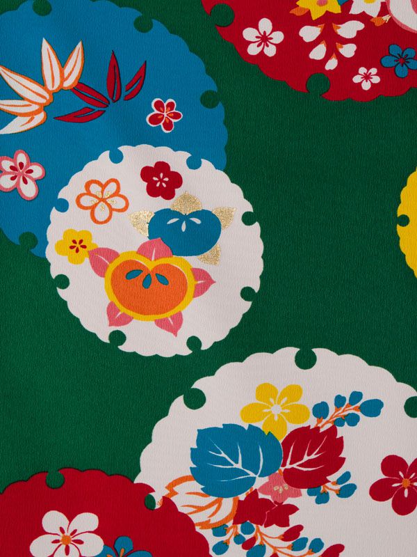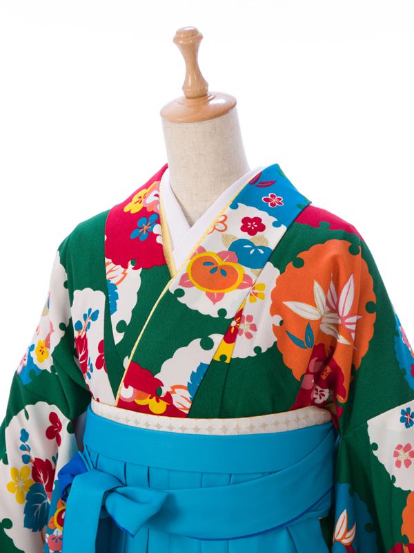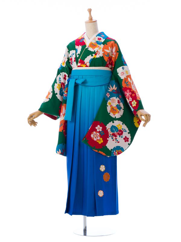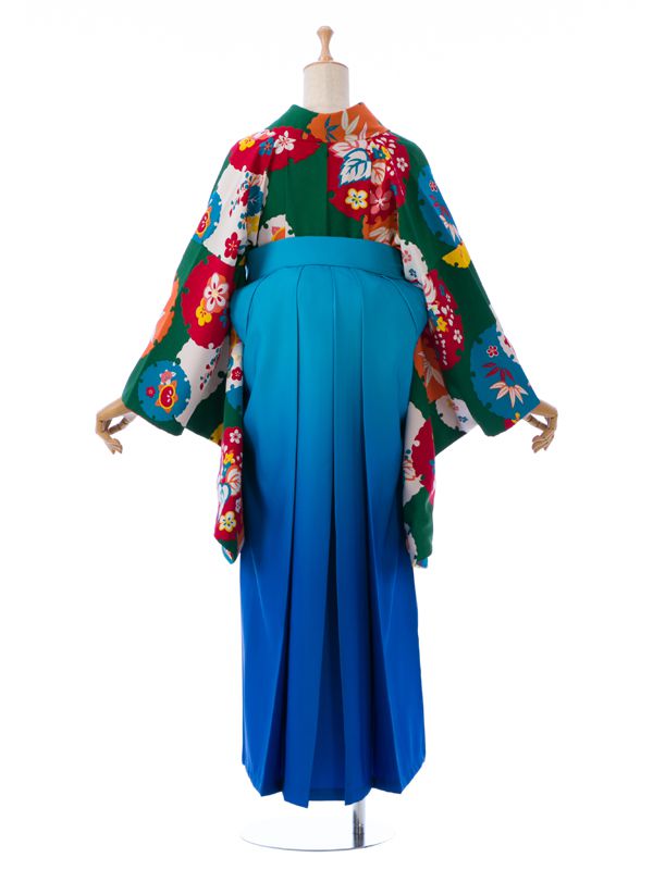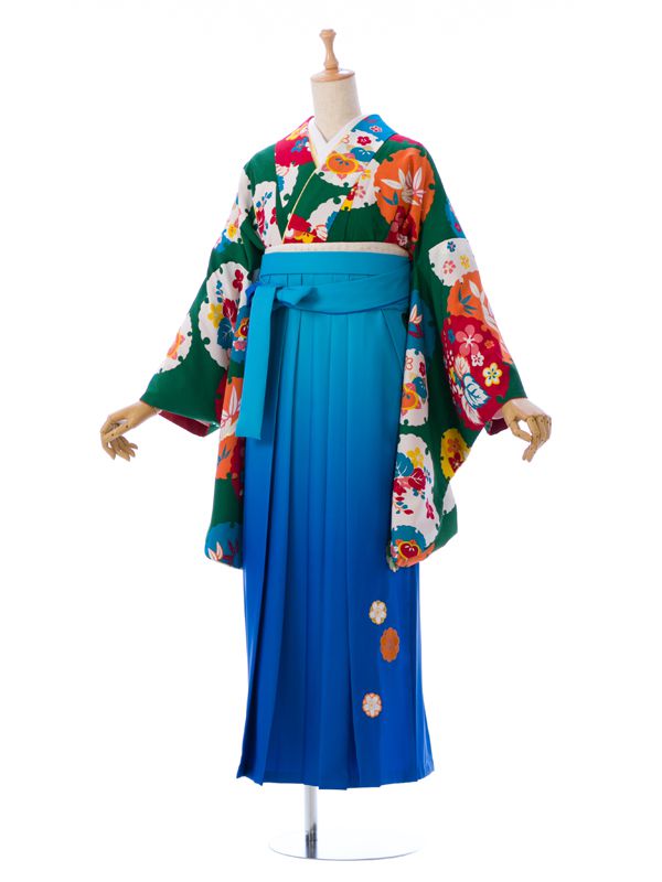 ■着物: グリーン 雪輪に四季花 モダンアンテナ■袴: ターコイズぼかし 桜刺繍 2.4