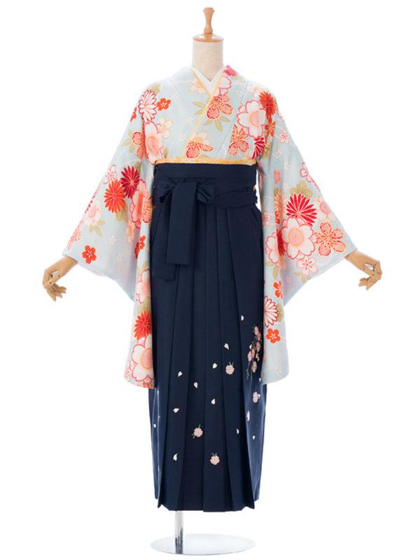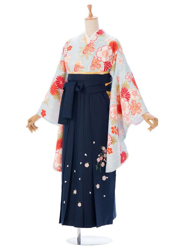 卒業袴|水色系|桜|R1517A|対応身長:158-162cm|サイズ:7-13号