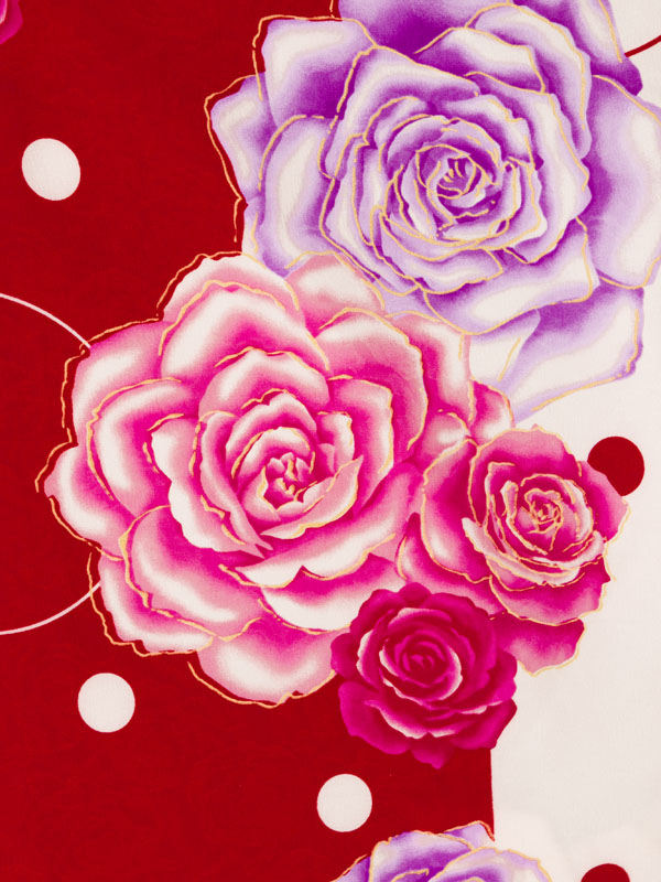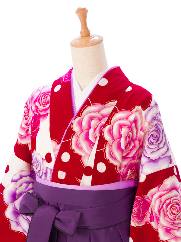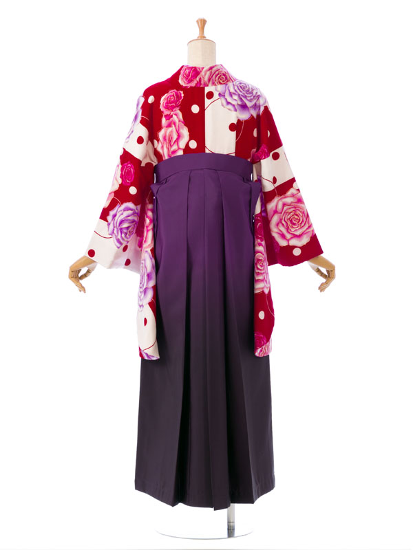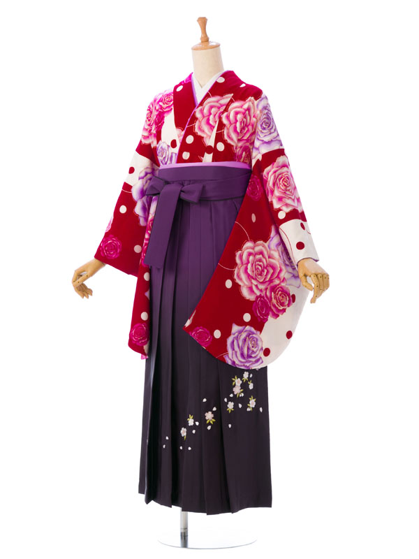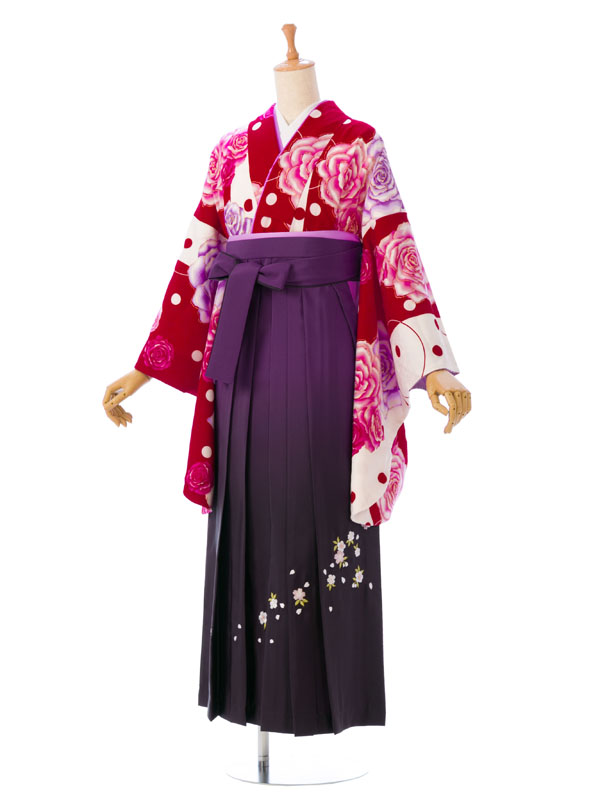 ■着物::Xmiss 赤×白 ドット 薔薇■袴:紫ぼかし袴 桜刺繍 2.5