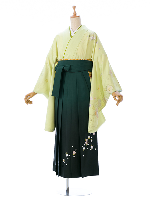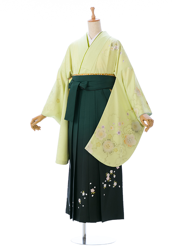 ■着物:若草色 桜■袴:グリーンぼかし袴 桜刺繍 2.5