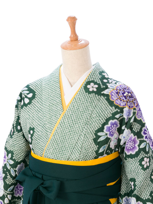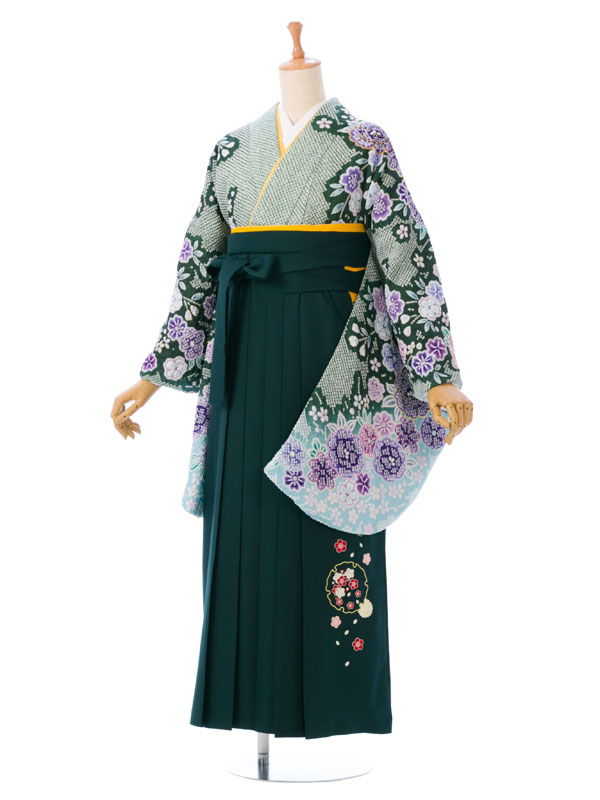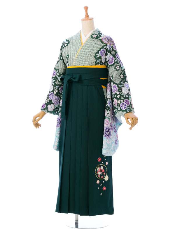 ■着物:グリーン地 疋田絞り調 桜■袴:グリーン袴 刺繍入り 2.5