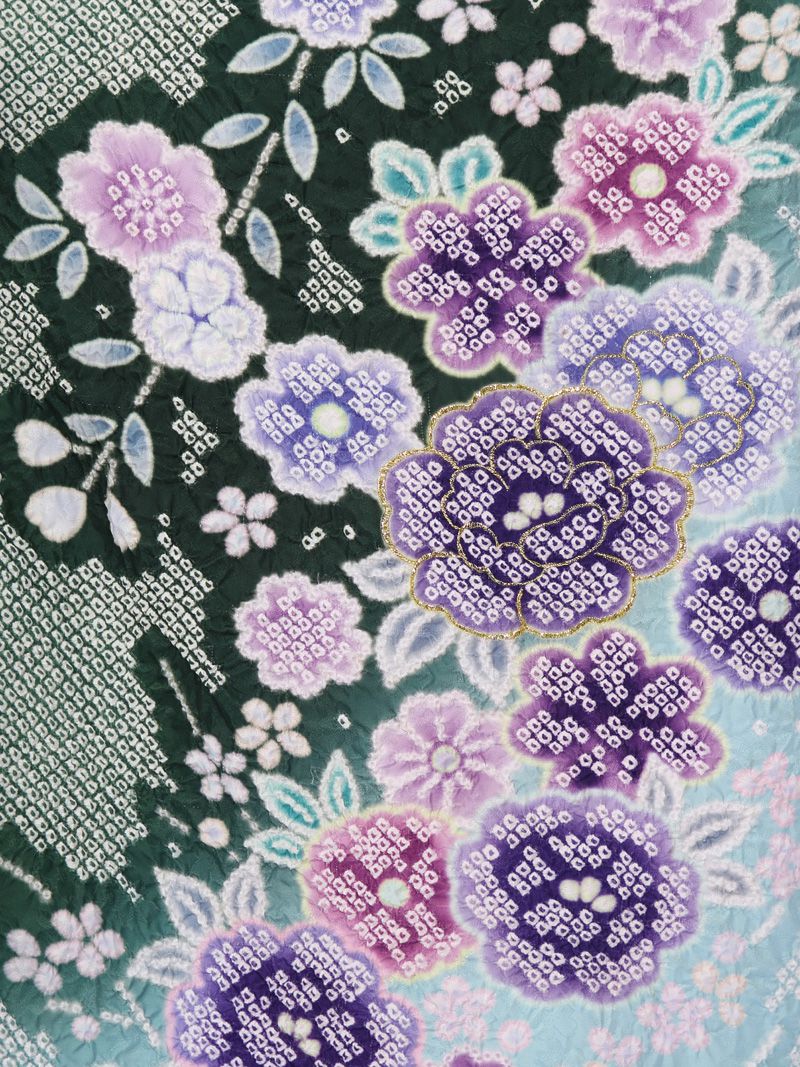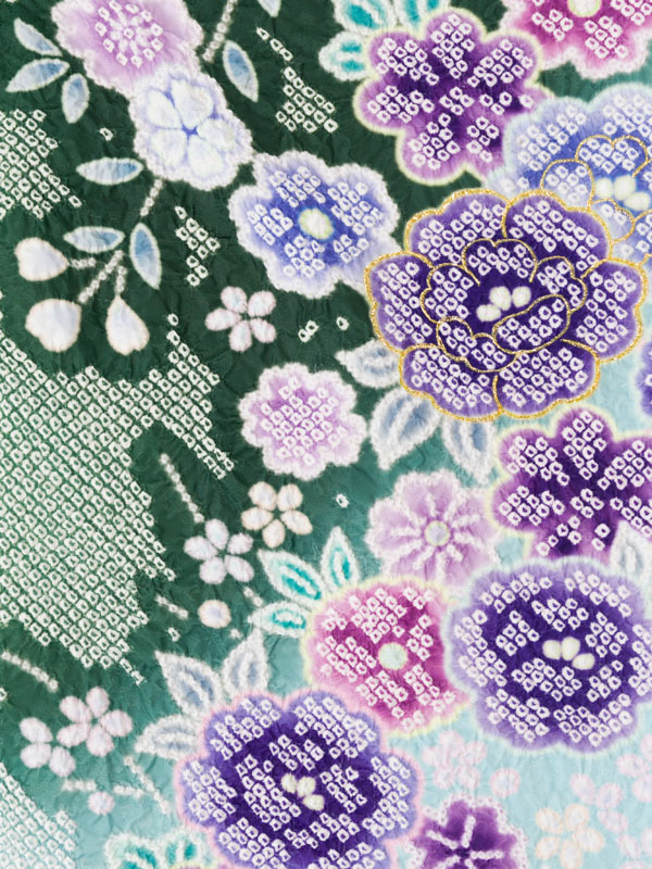 グリーンの疋田絞り調の古典柄ですR1507_H151-25-4