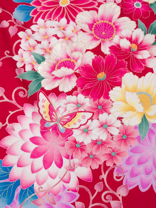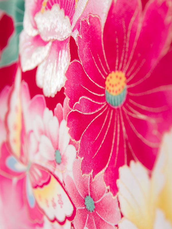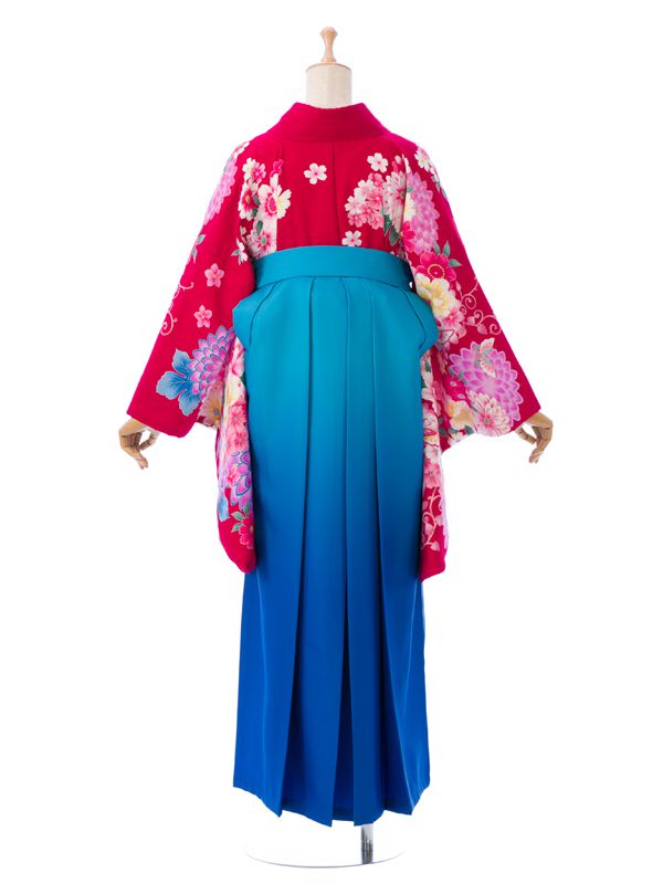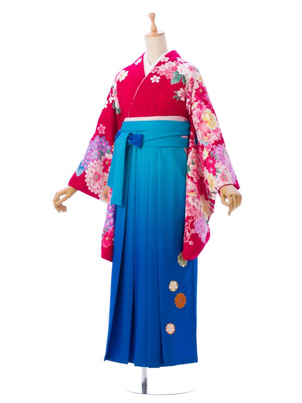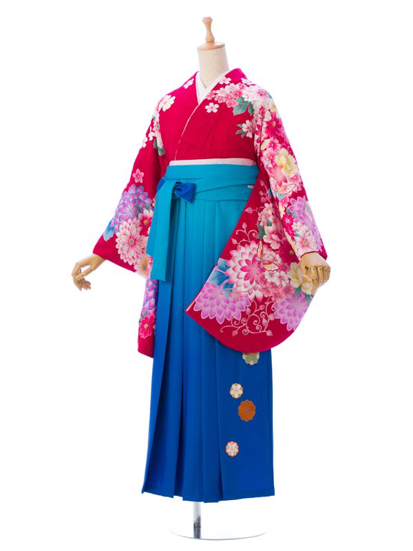 ■着物:マゼンダ 洋花に蝶■袴:ターコイズぼかし袴 刺繍入り2.4