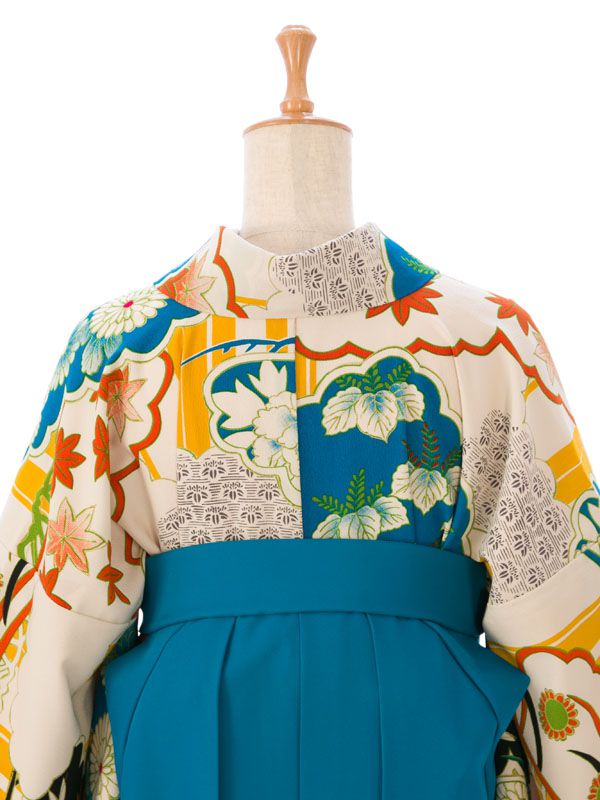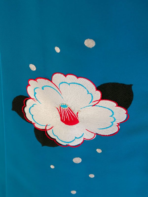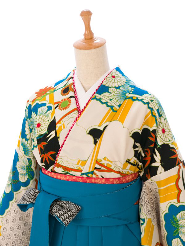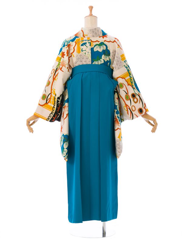 ■着物:クリーム×ターコイズ■袴:ターコイズ 椿刺繍 2.5
