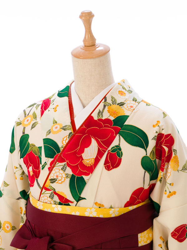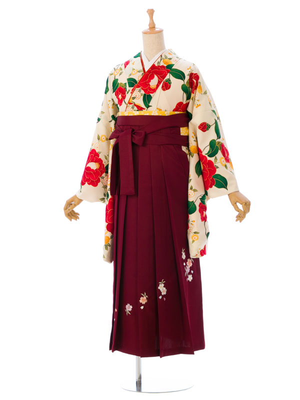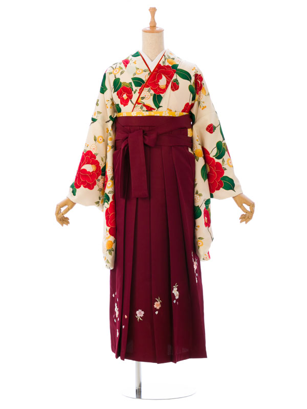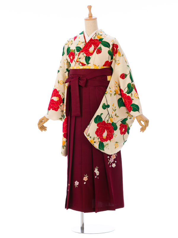 ■着物:クリーム地 乙女椿■袴:エンジ袴 桜刺繍