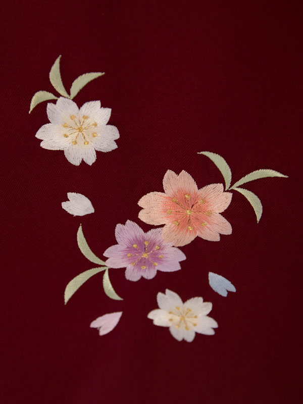 ■着物:クリーム地 乙女椿■袴:エンジ袴 桜刺繍