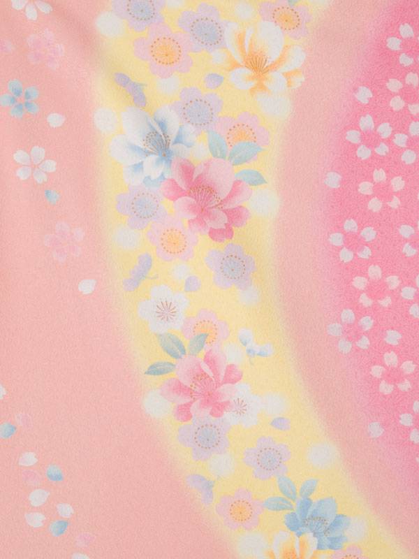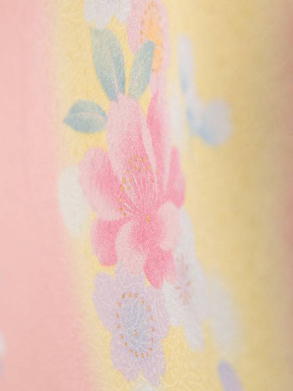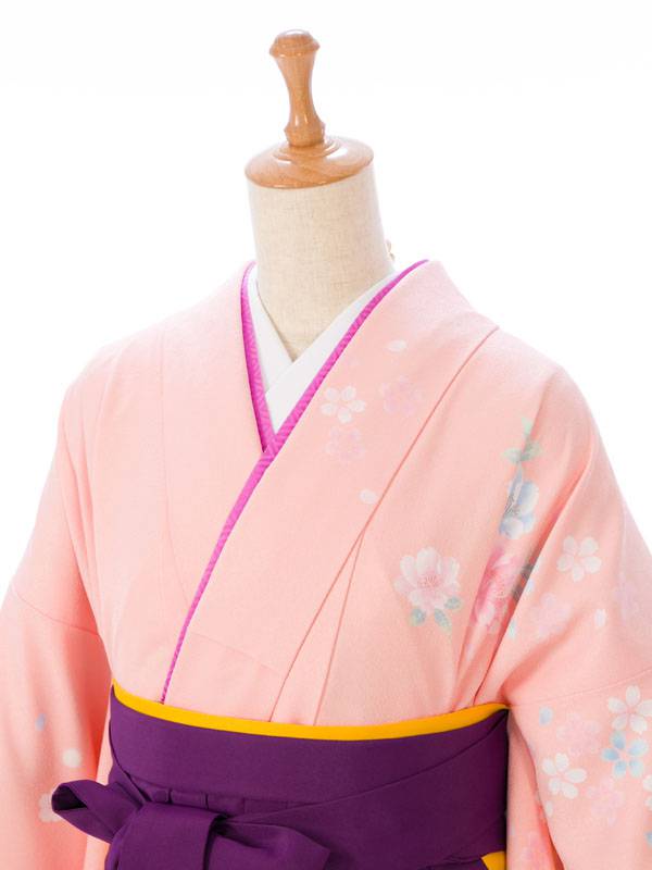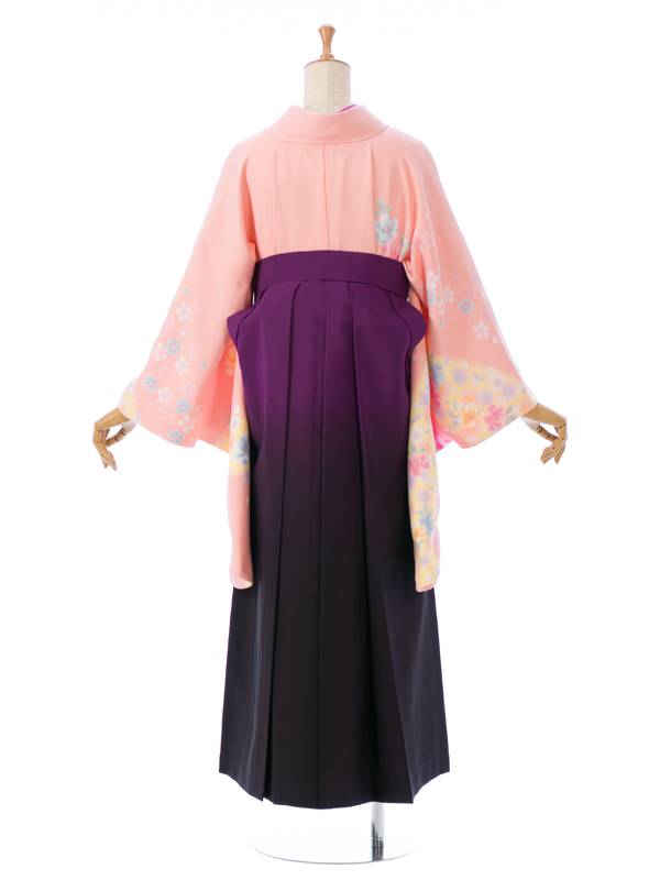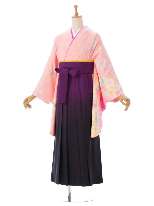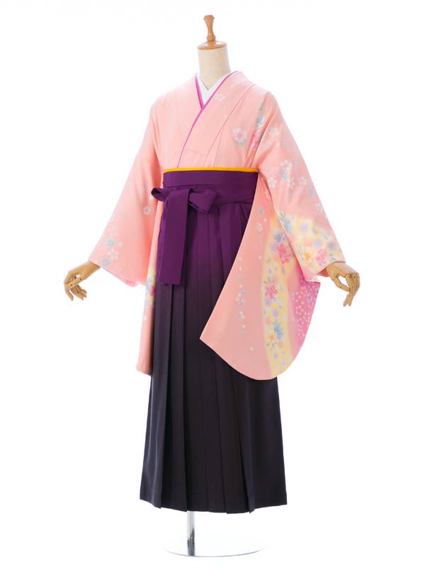 ■着物: ピンク地 黄色ぼかし 桜■袴: 紫ぼかし袴2.5