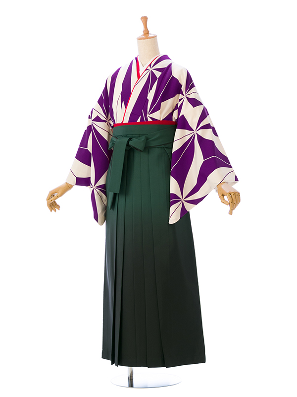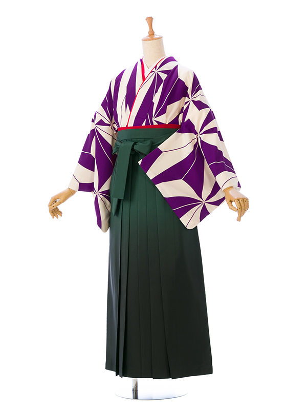 ■着物:紫×白 風車文様■袴:グリーンぼかし袴 2.3