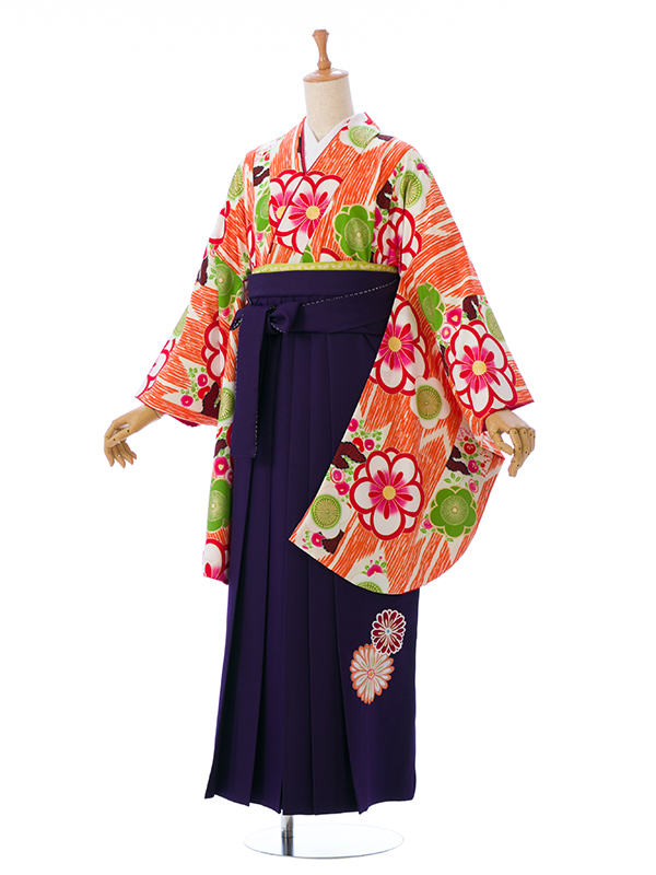 卒業袴|オレンジ系|桜|R1516|対応身長:158-162cm|サイズ:7-13号|寛斎
