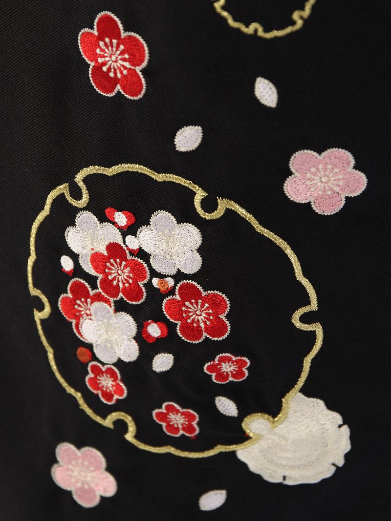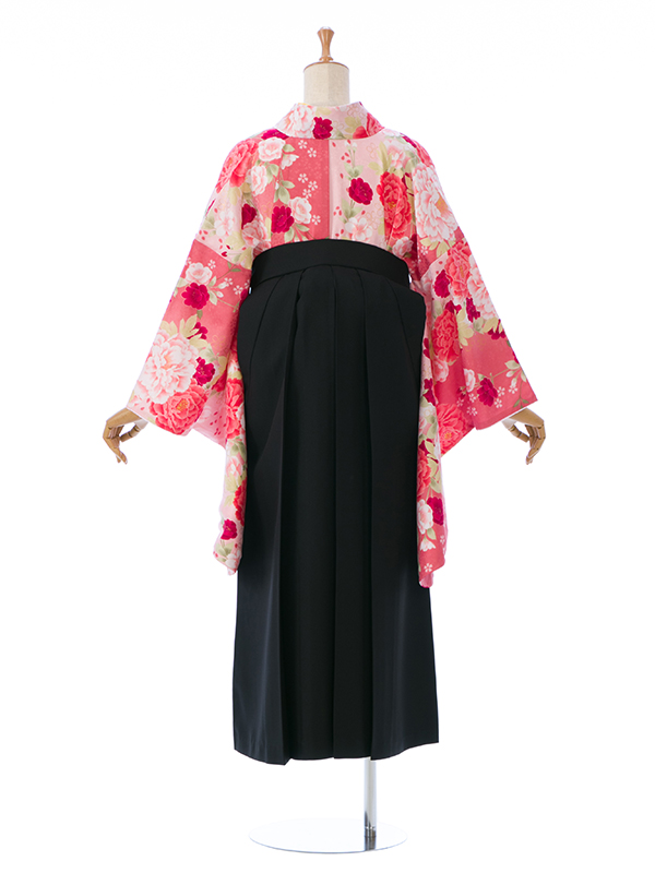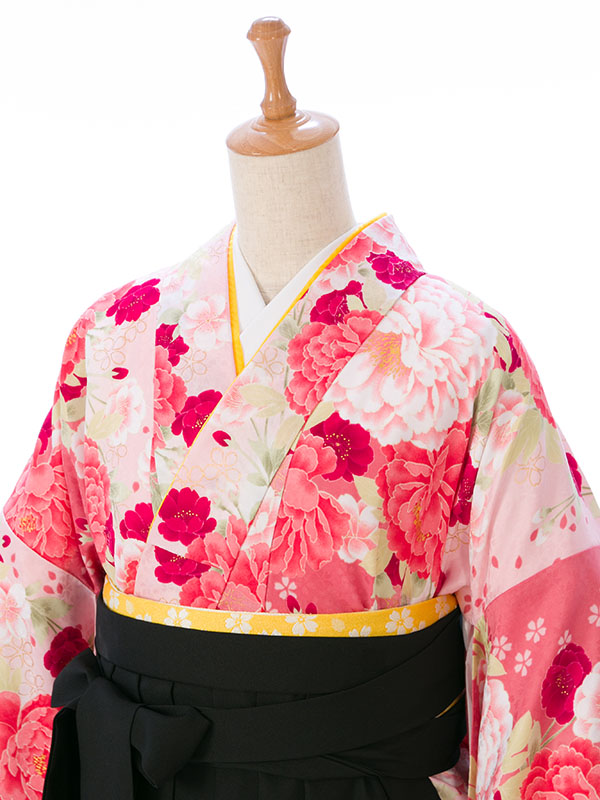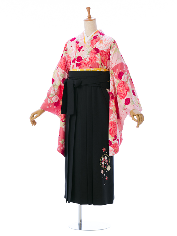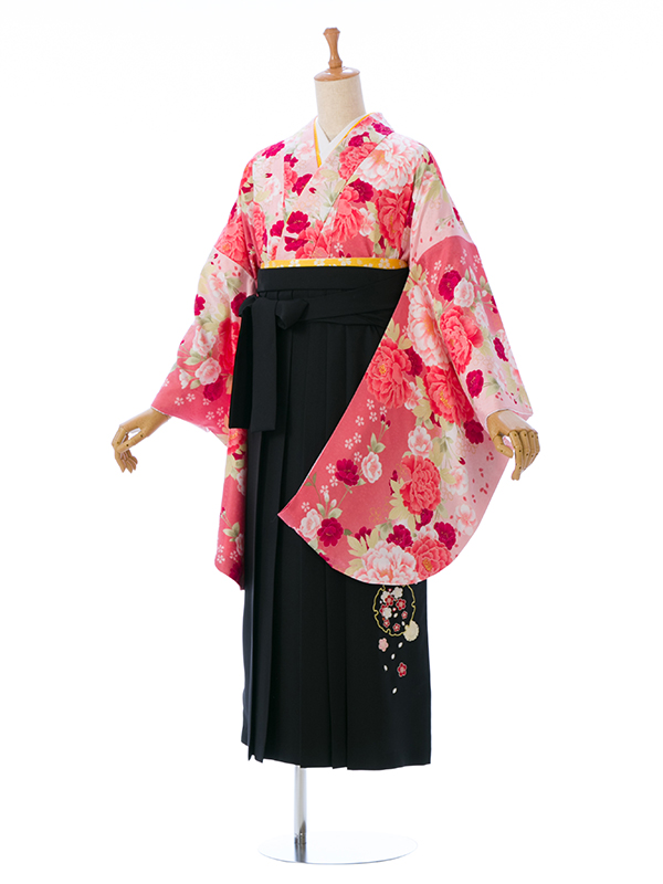 【着物色/柄】着物:ピンク地 牡丹 桜 袴:黒袴 刺繍入り