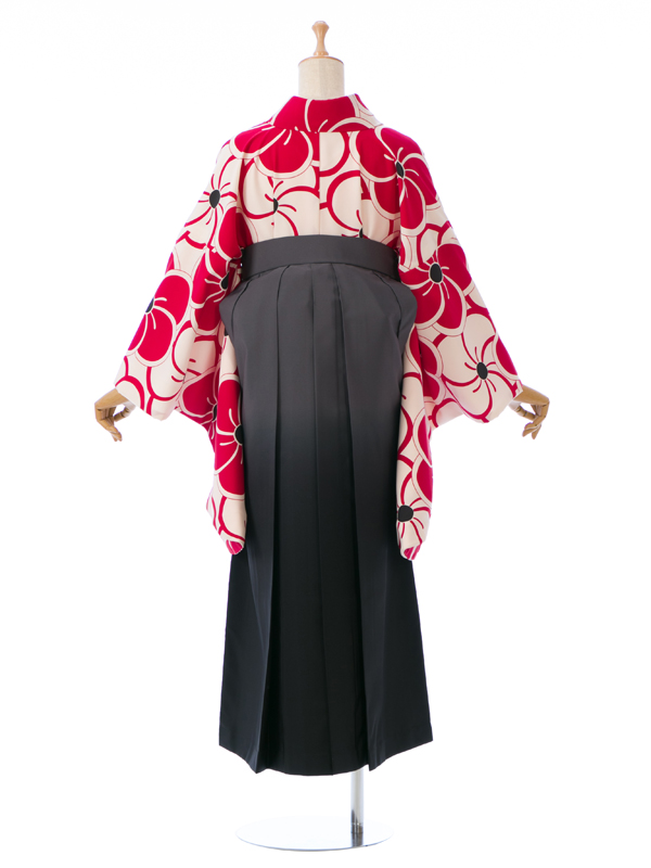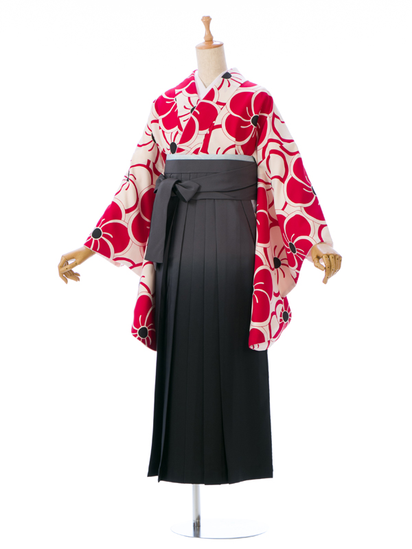 【着物色/柄】着物:白地 赤ねじり梅 袴:グレーぼかし