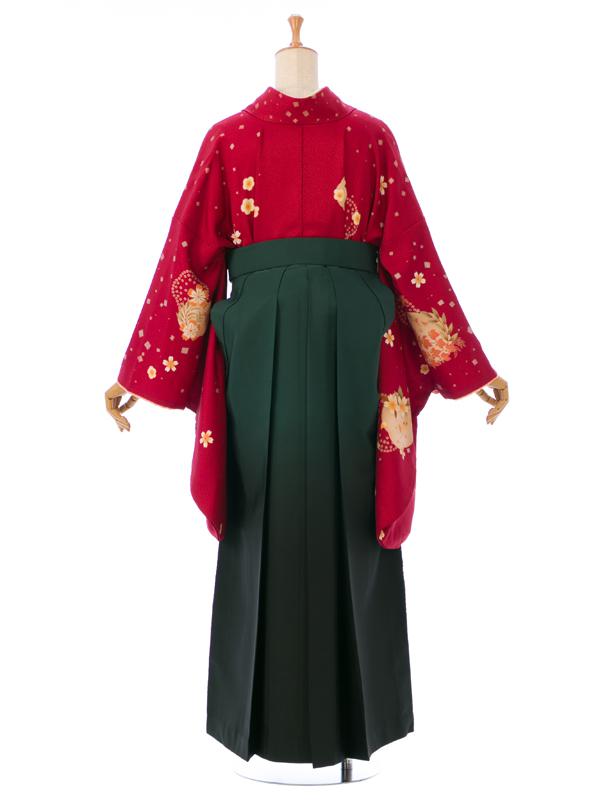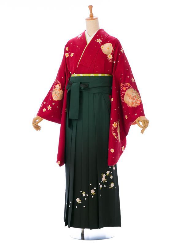 色/柄 着物:エンジ地 切箔に桜 袴:グリーンぼかし 桜刺繍