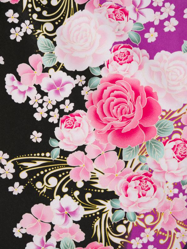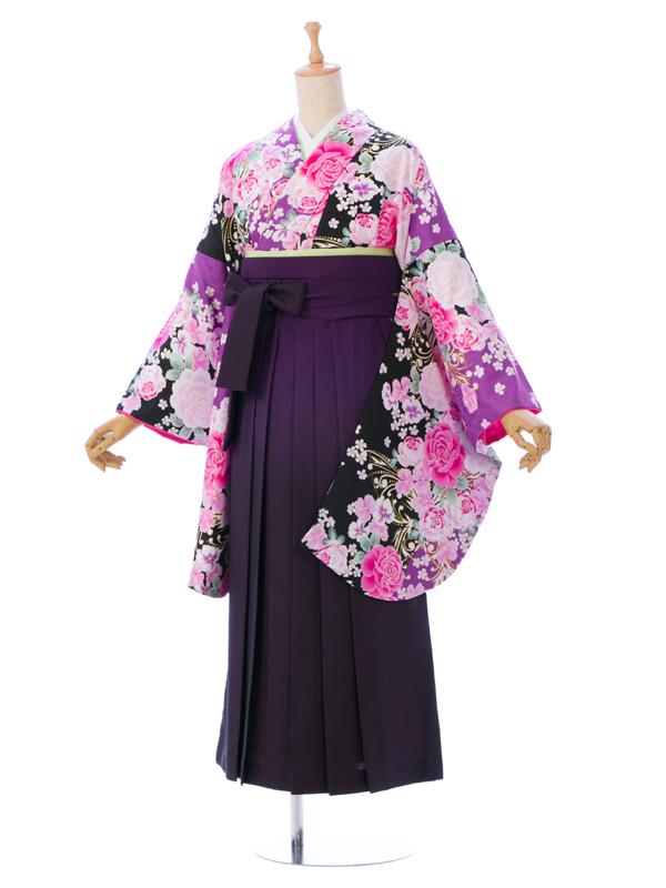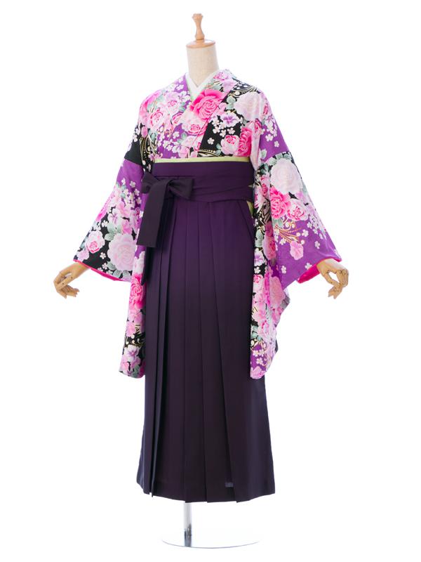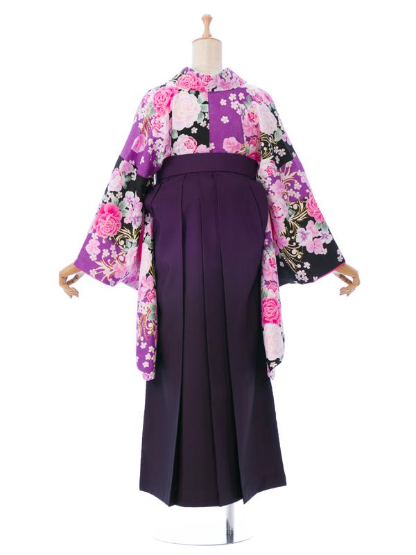 ■着物:紫/黒地 薔薇 桜 蝶■袴:紫ぼかし袴