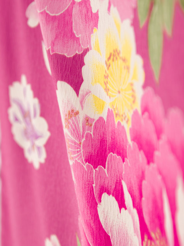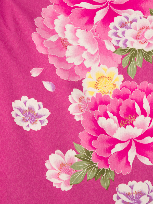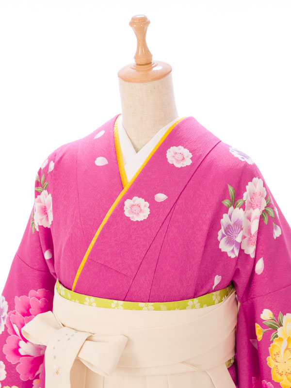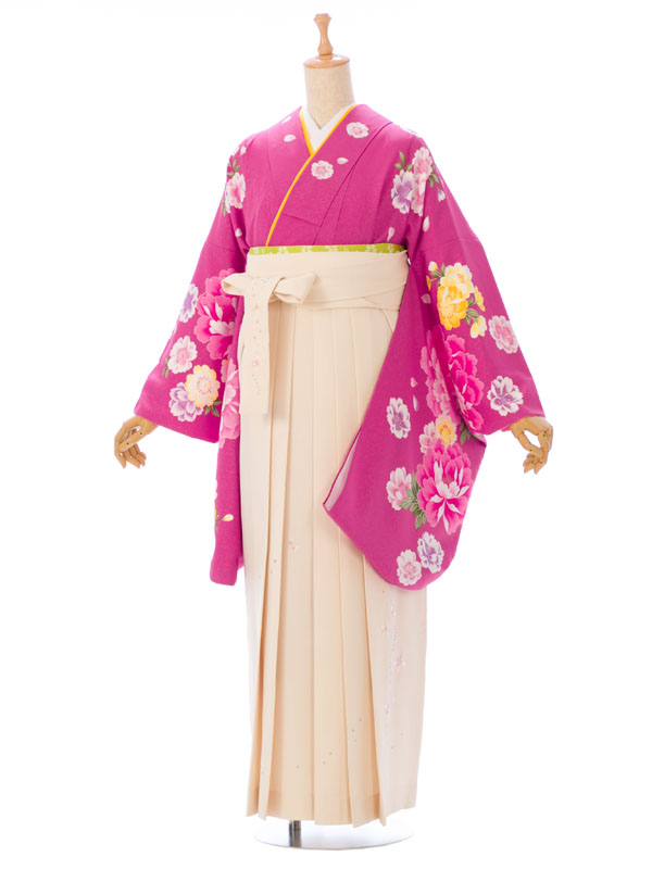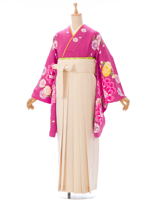 ■着物:ピンクパープル地に牡丹と八重桜■袴:クリーム地 桜刺繍