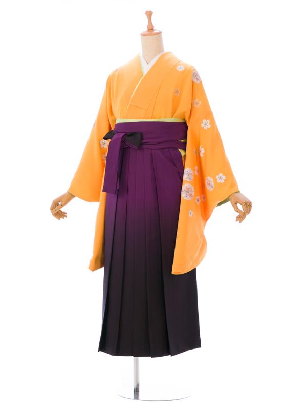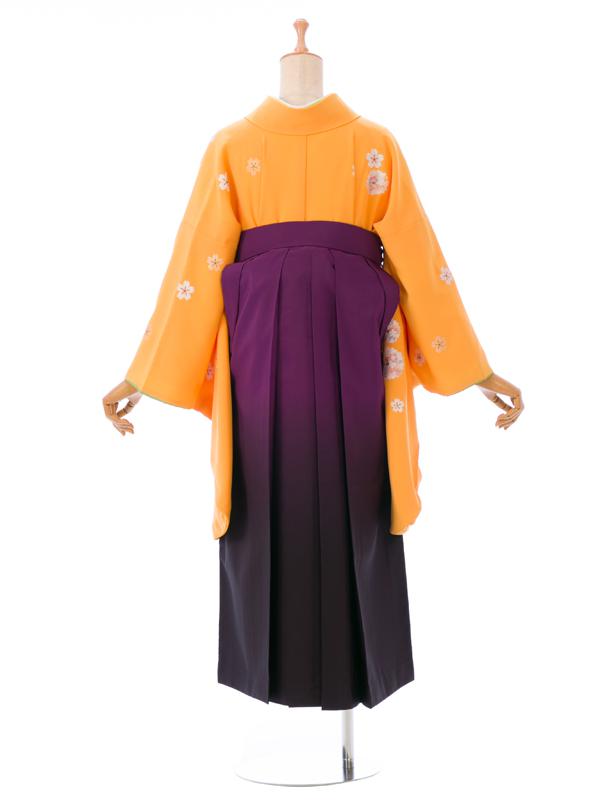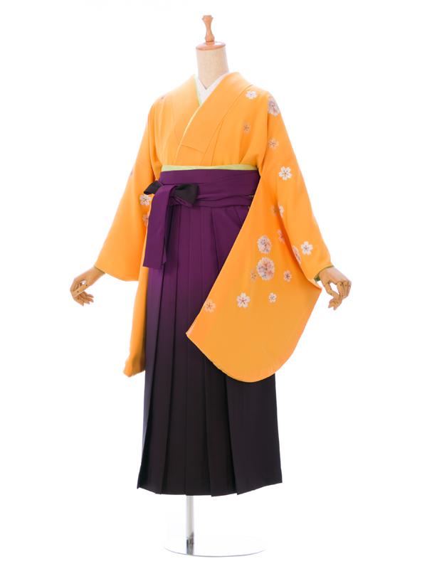 ■着物:イエロー地 桜文様■袴:紫ぼかし袴