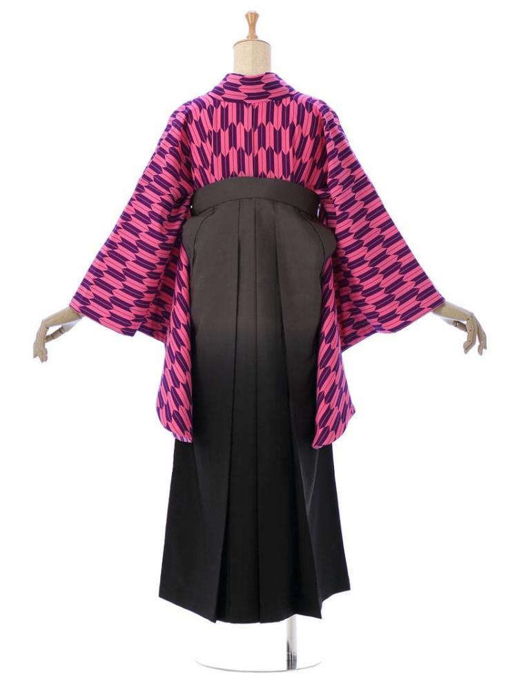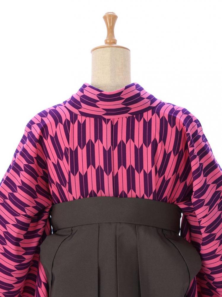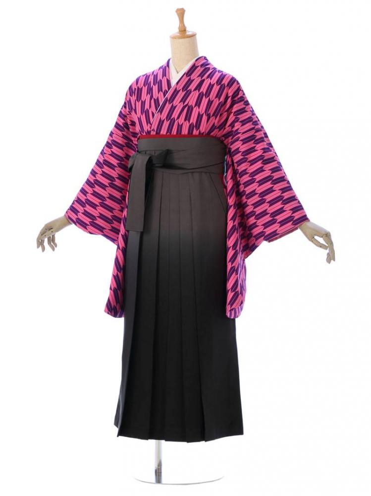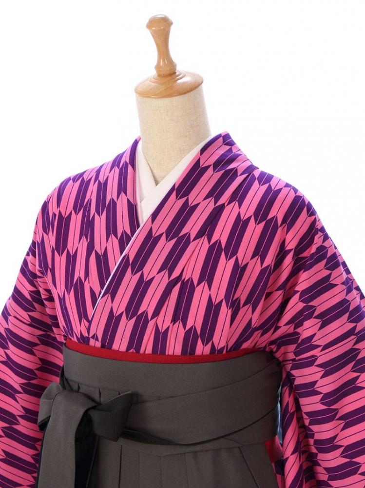 着物:ピンク×紫 矢絣 袴:グレーぼかし袴