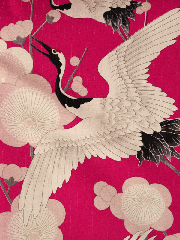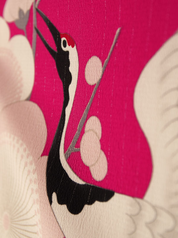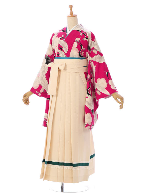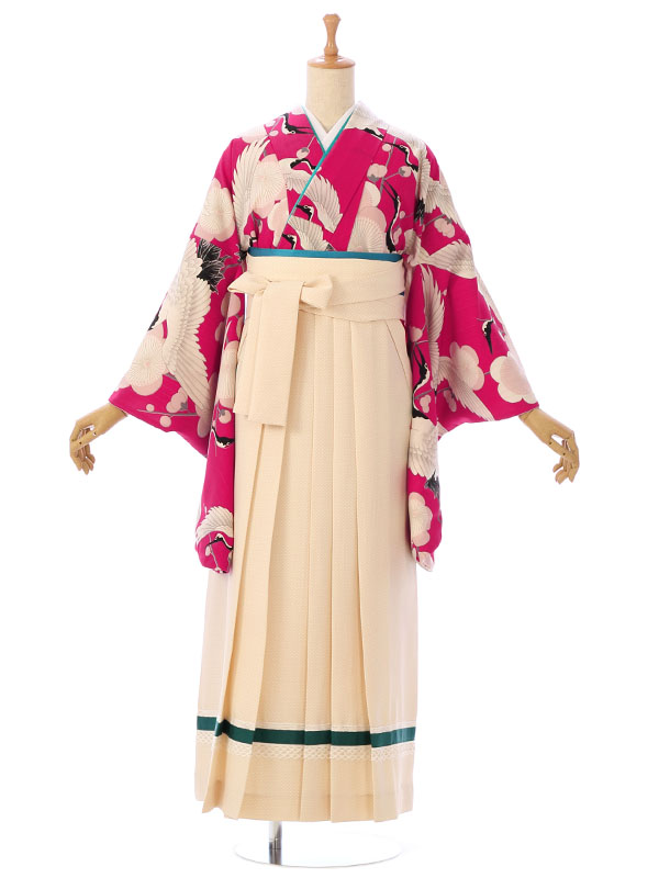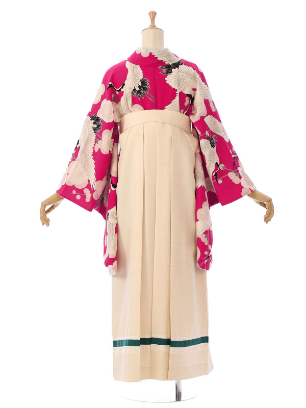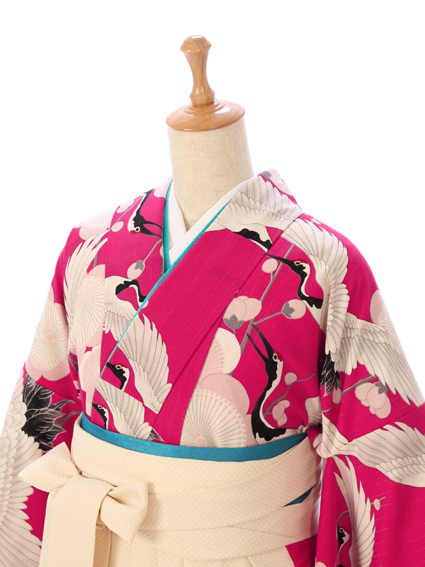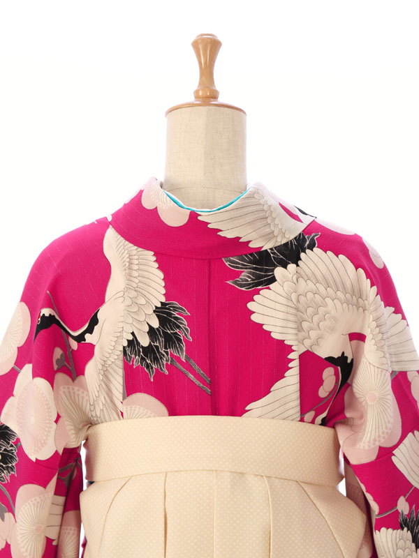 和風館縁起が良いとされる梅と鶴文様の描かれたハッピーピンクの小振袖☆大白のドット地の袴は、ちょっとレアな雰囲気で,段違いのシャレ感です。R056_E-H030-250