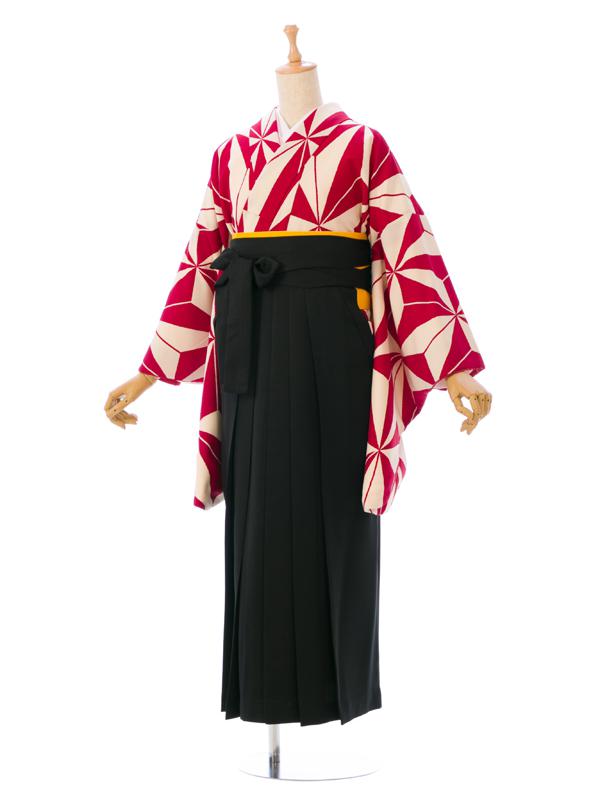 ■着物:赤(えんじ)×白地 麻の葉■袴:黒