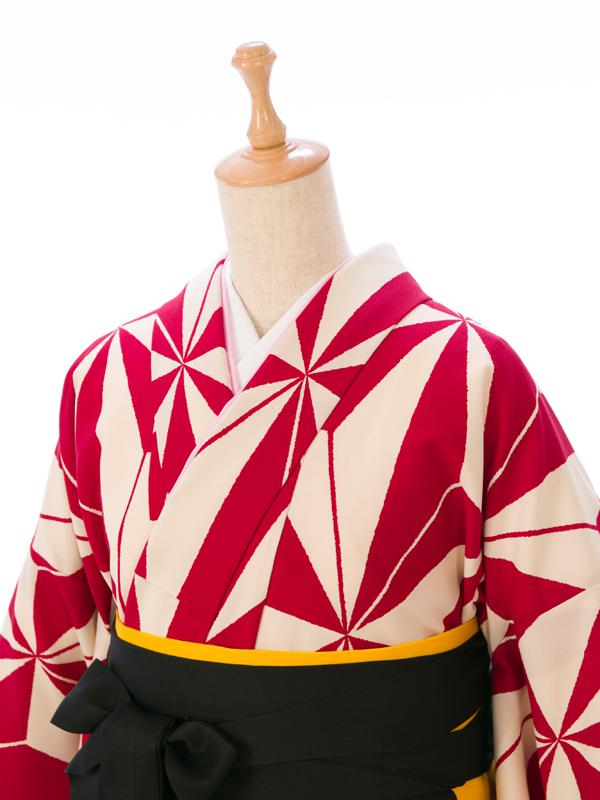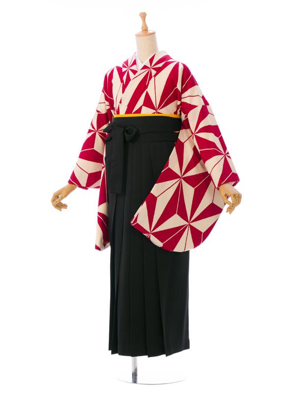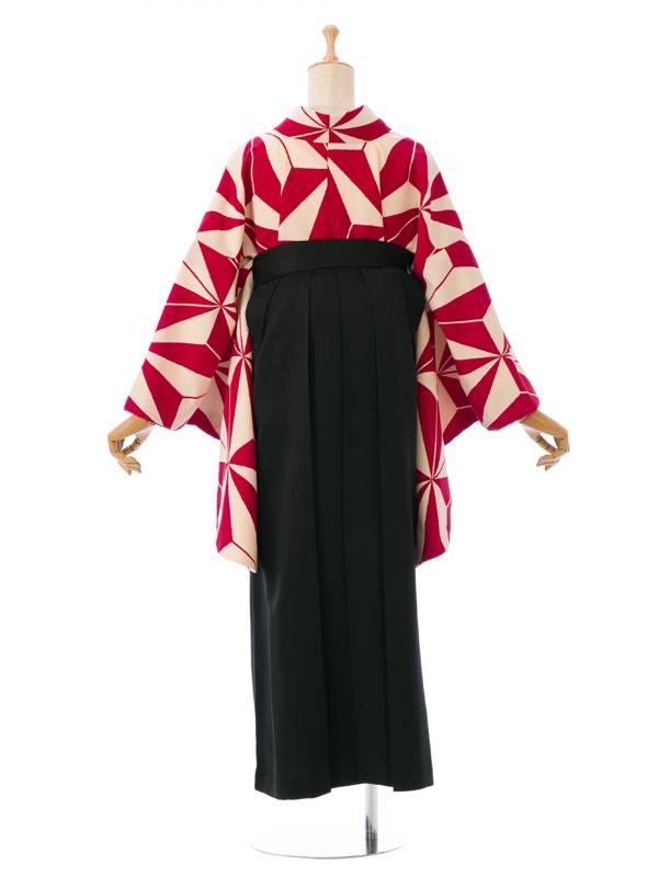 ■着物:赤(えんじ)×白地 麻の葉■袴:黒