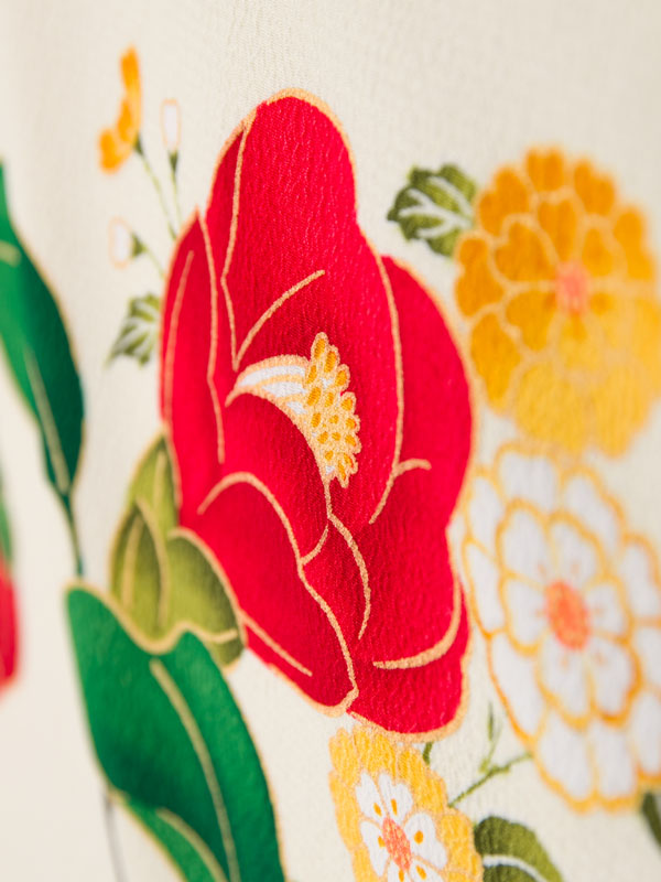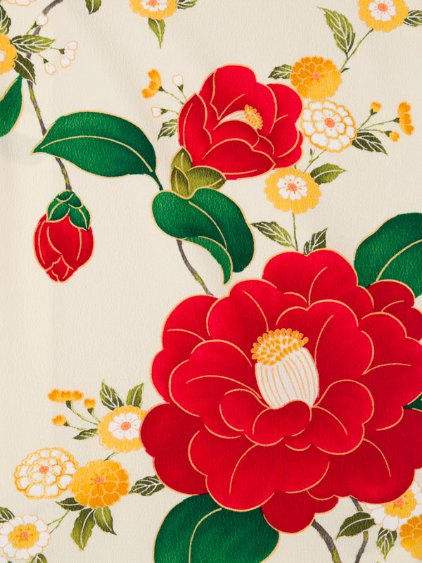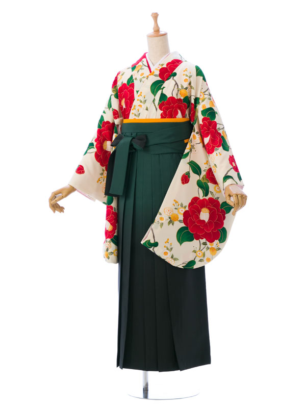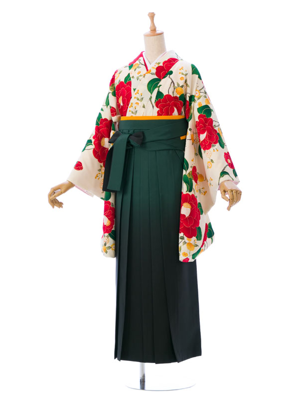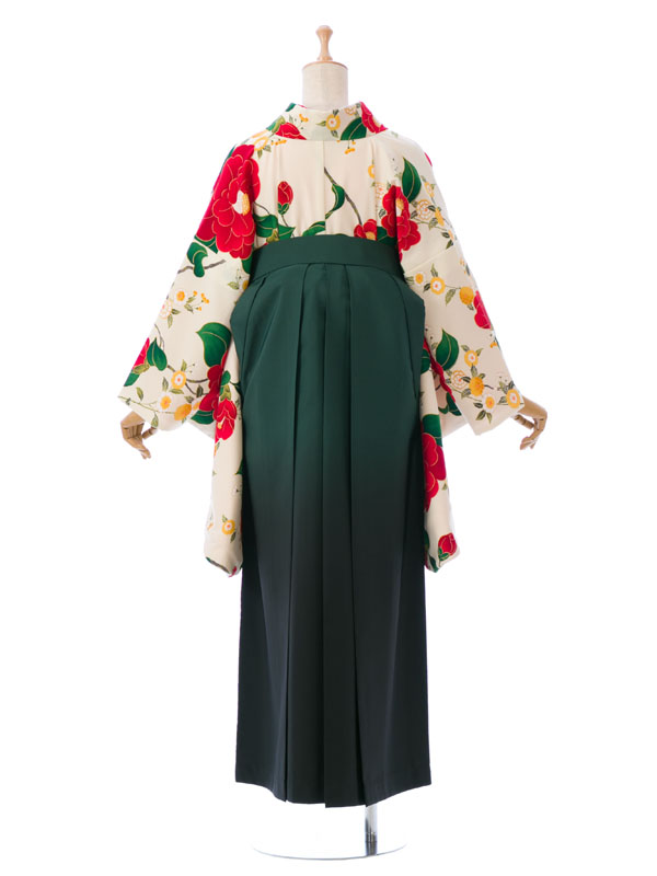 着物:[きもの道楽]オフ白 乙女椿 袴:グリーンぼかし袴