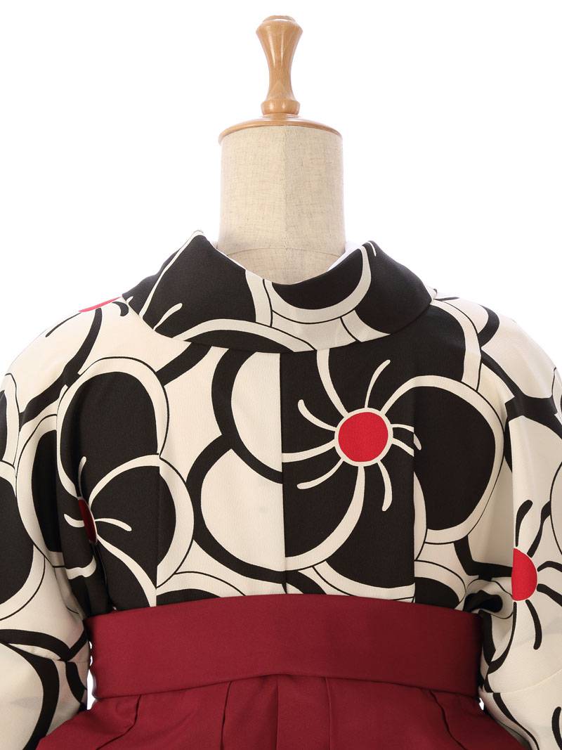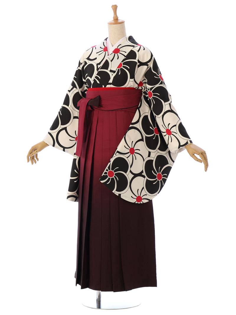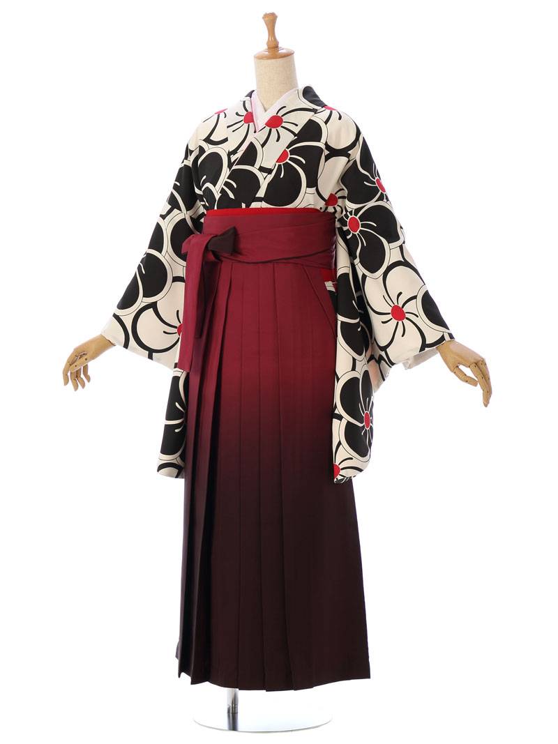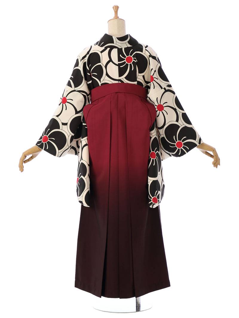 着物:白×黒 大梅 袴:ワインぼかし袴