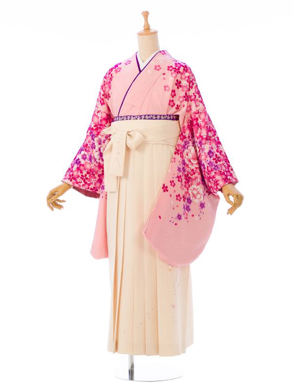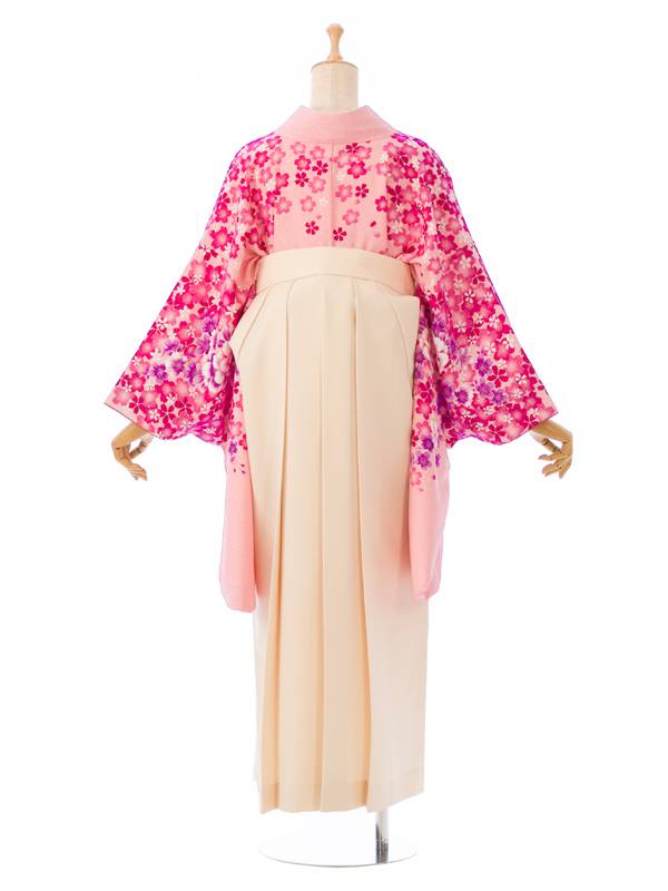 ■着物:ピンク地 桜づくし■袴:クリーム袴