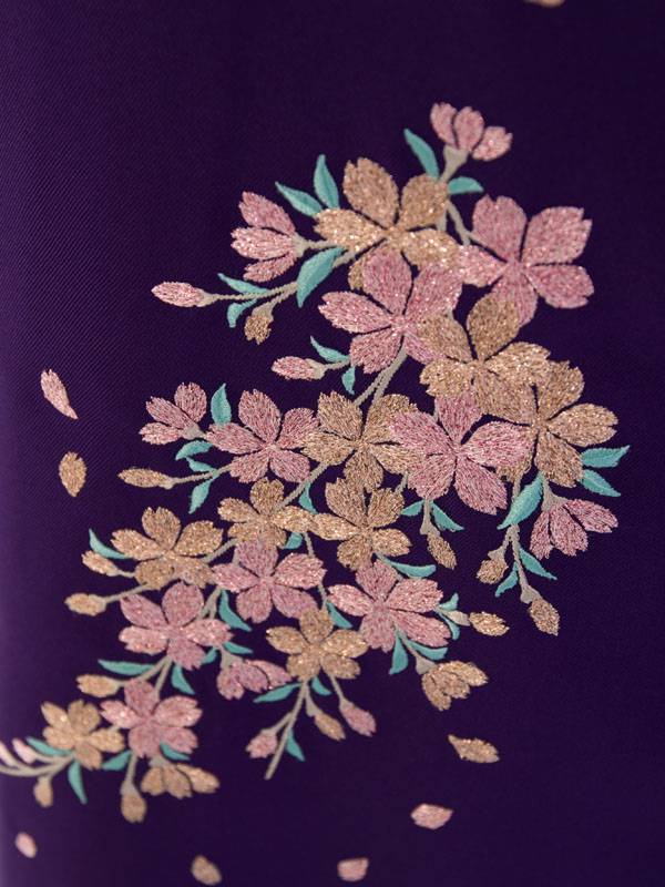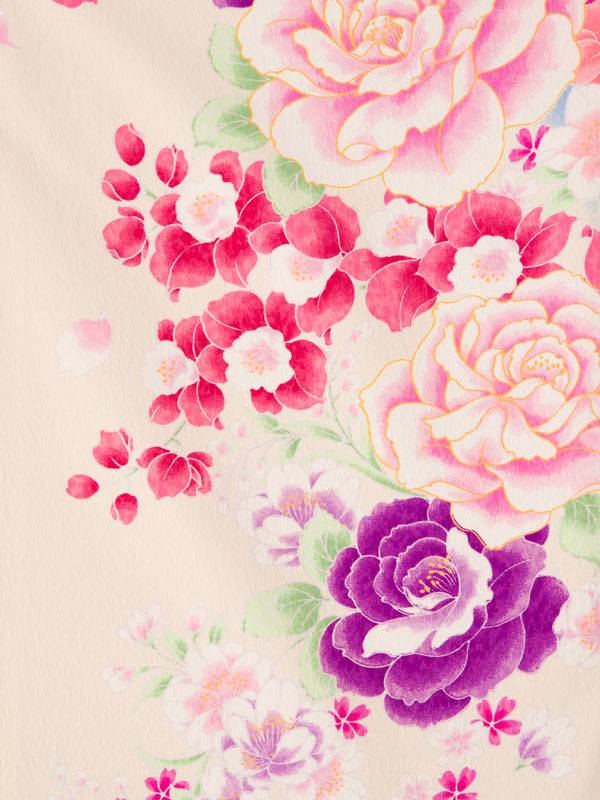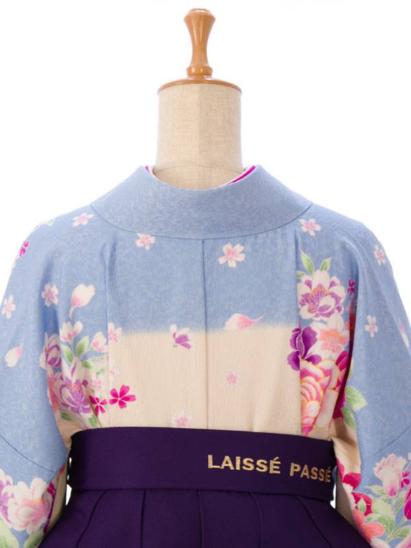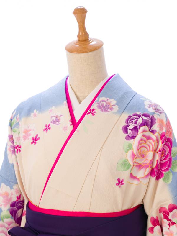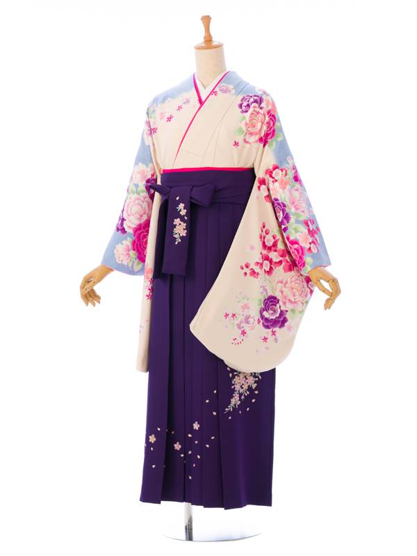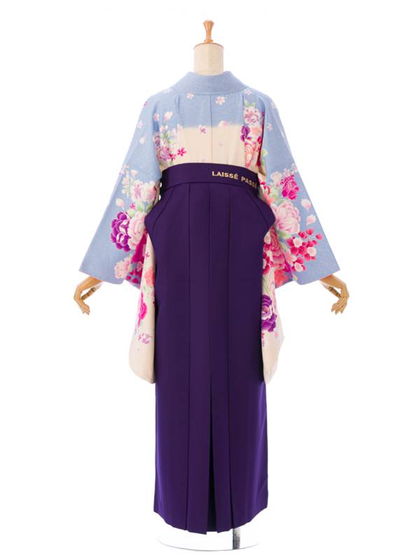 ■着物:クリーム地 水色ぼかし 薔薇■袴:紫地 桜刺繍