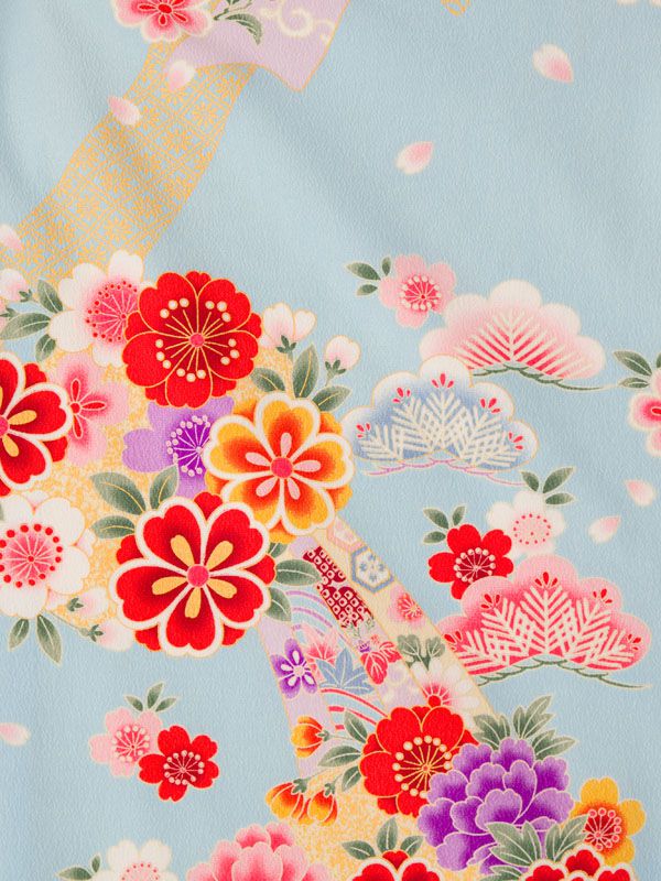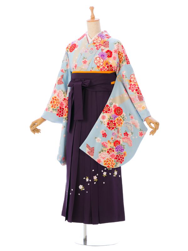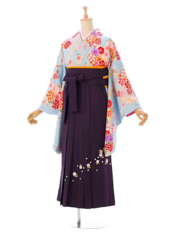 ■着物:水色 花丸 古典柄■袴:紫袴 桜刺繍