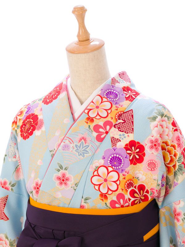 卒業袴|水色系|E-R007|対応身長:153-158cm|サイズ:7-13号
