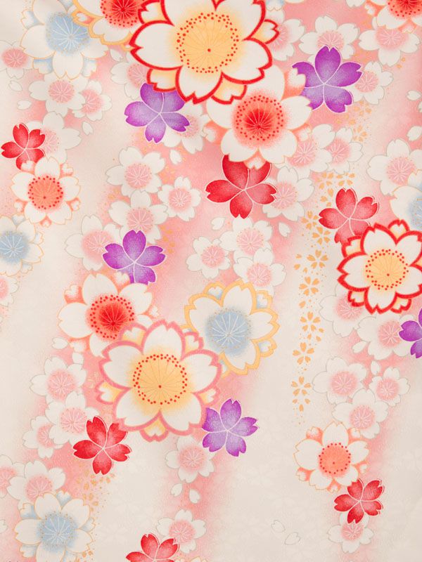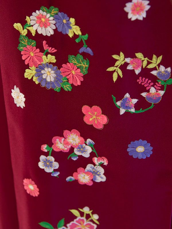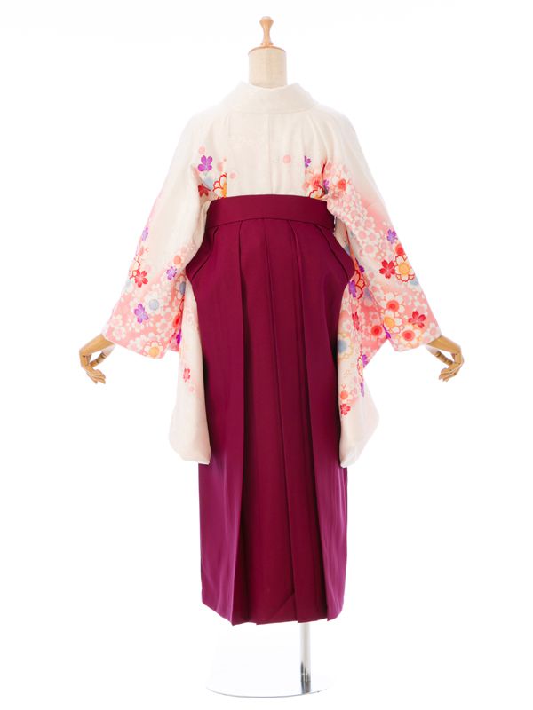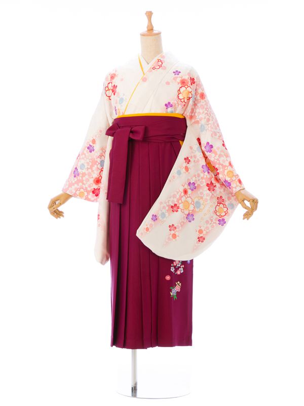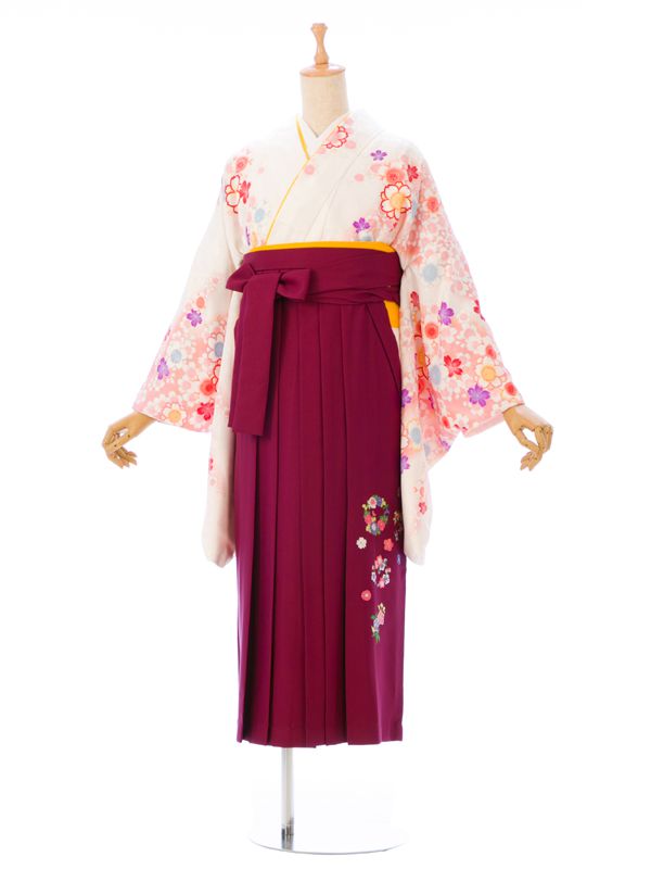 ■着物:白地 ピンクぼかし 桜■袴:エンジ 花の丸刺繍