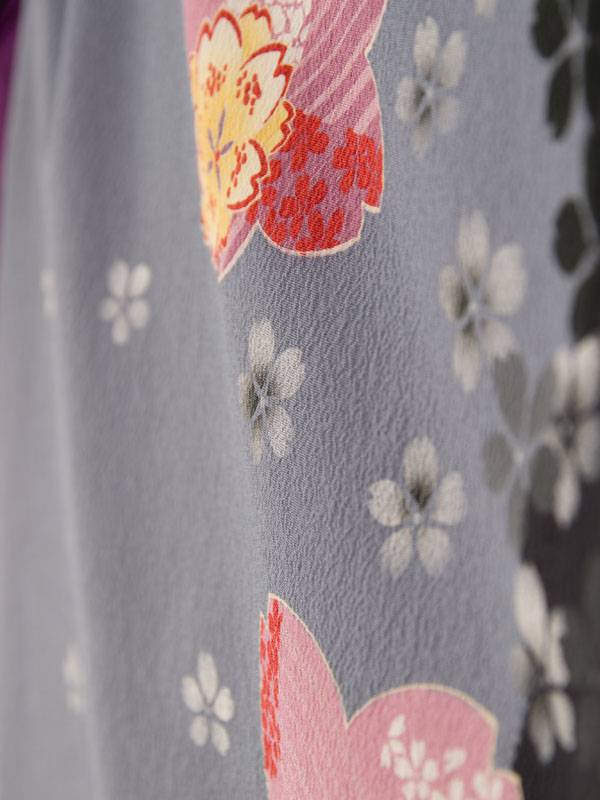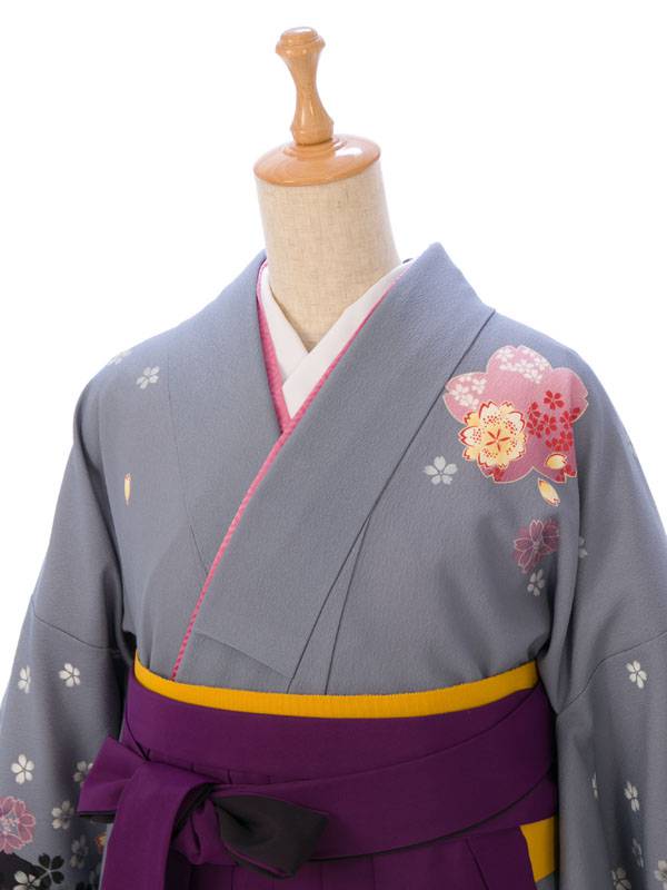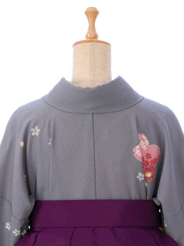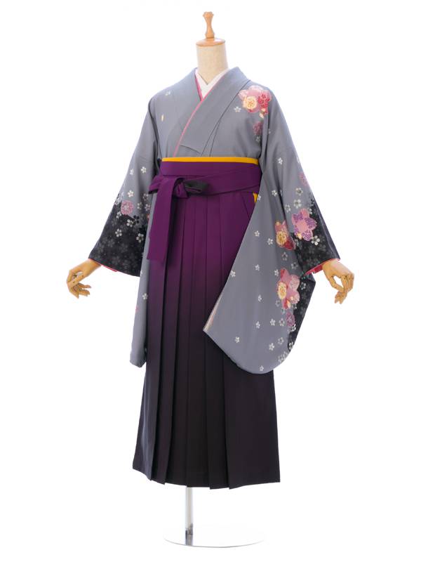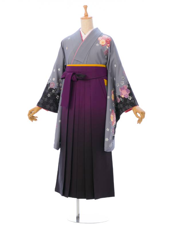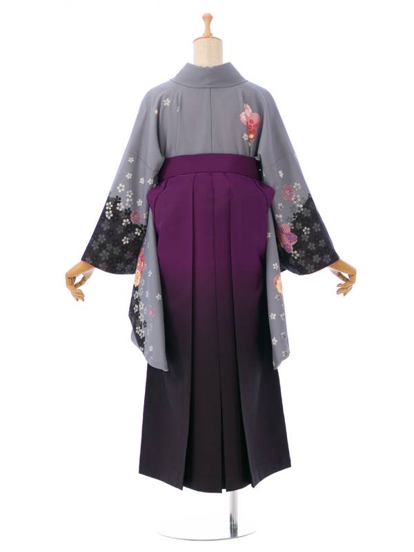■着物: グレー黒ぼかし 桜■袴:紫ぼかし袴